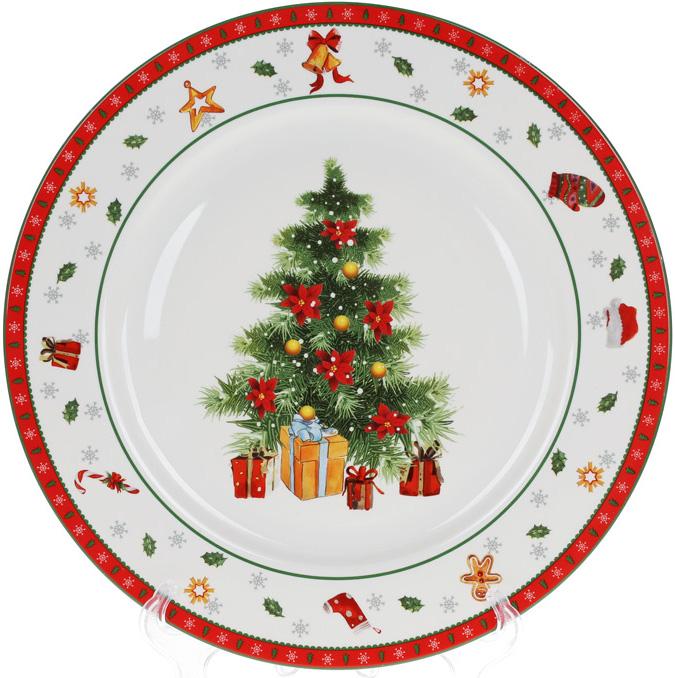 Новорічна тарілка обідня порцелянова Ялинки 26,7 см
