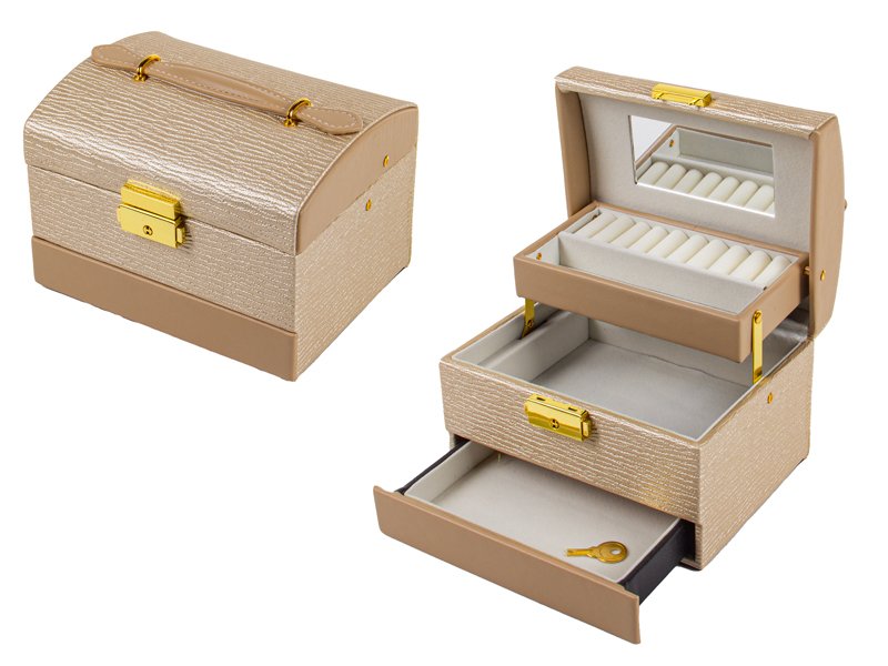 М’яка оксамитова обробка, зручні секції та дзеркала дозволяють зберігати кільця, сережки, браслети й ланцюжки без сплутування та пошкоджень. Надійна фурнітура та якісні матеріали роблять скриньки довговічними, а відкривання й закривання — плавним і приємним. Це ідеальний варіант як для щоденного використання, так і для дбайливого зберігання цінних прикрас.