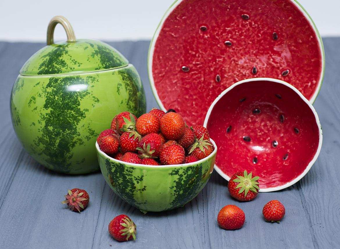 Роскошная ёмкость для хранения из коллекции «Сочный арбуз» португальского бренда Bordallo изготовлена из прочной качественной керамики.