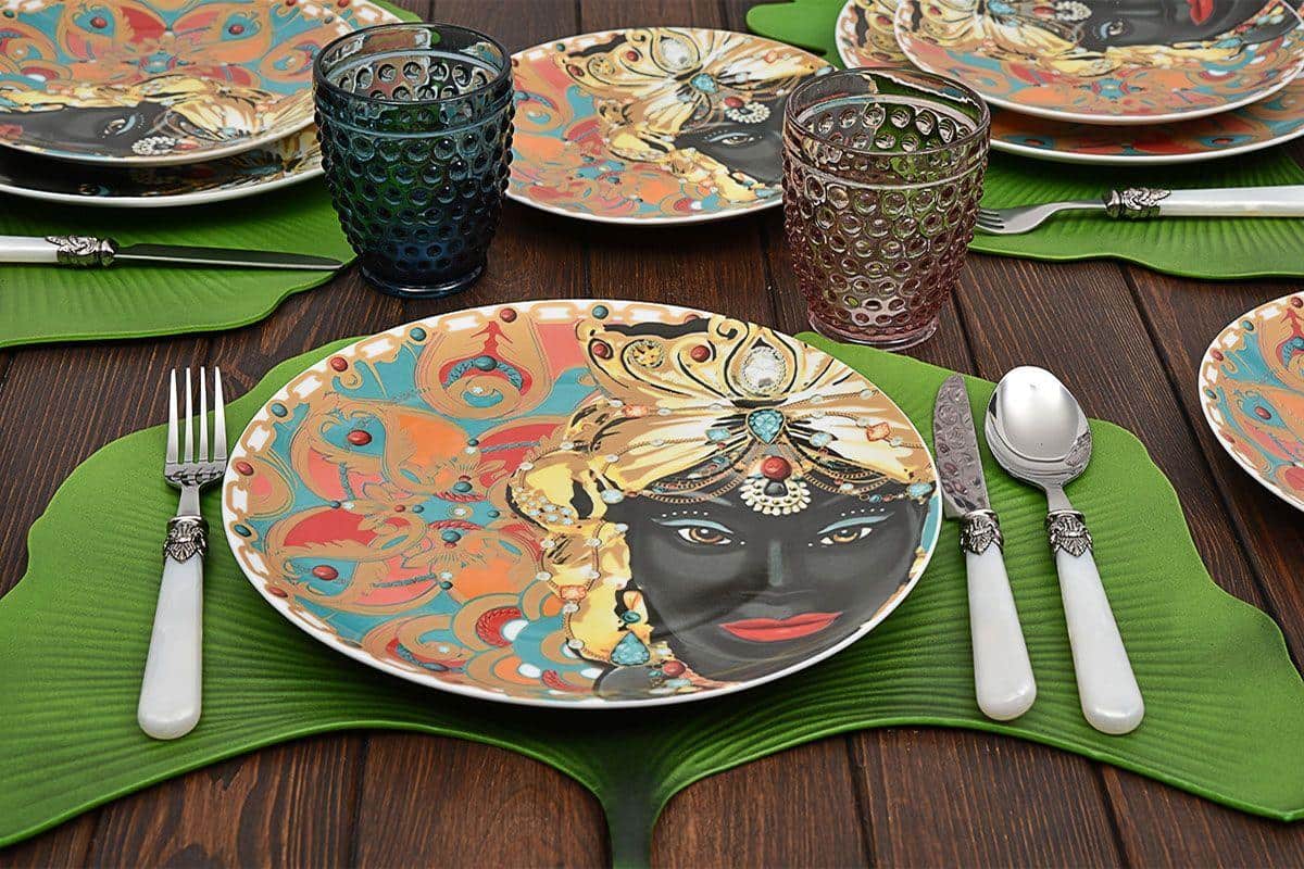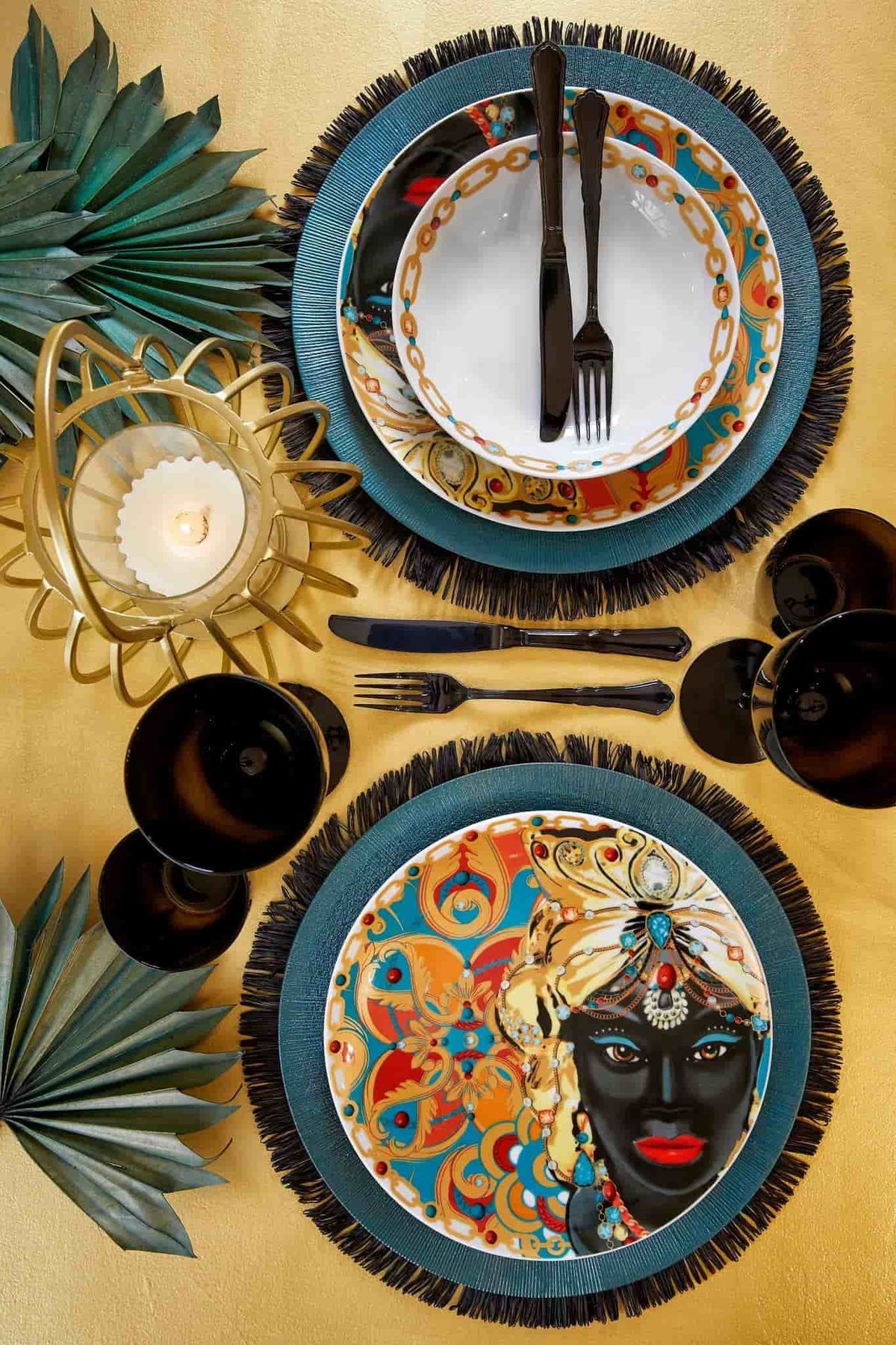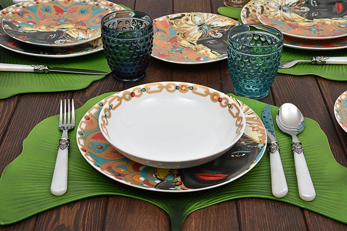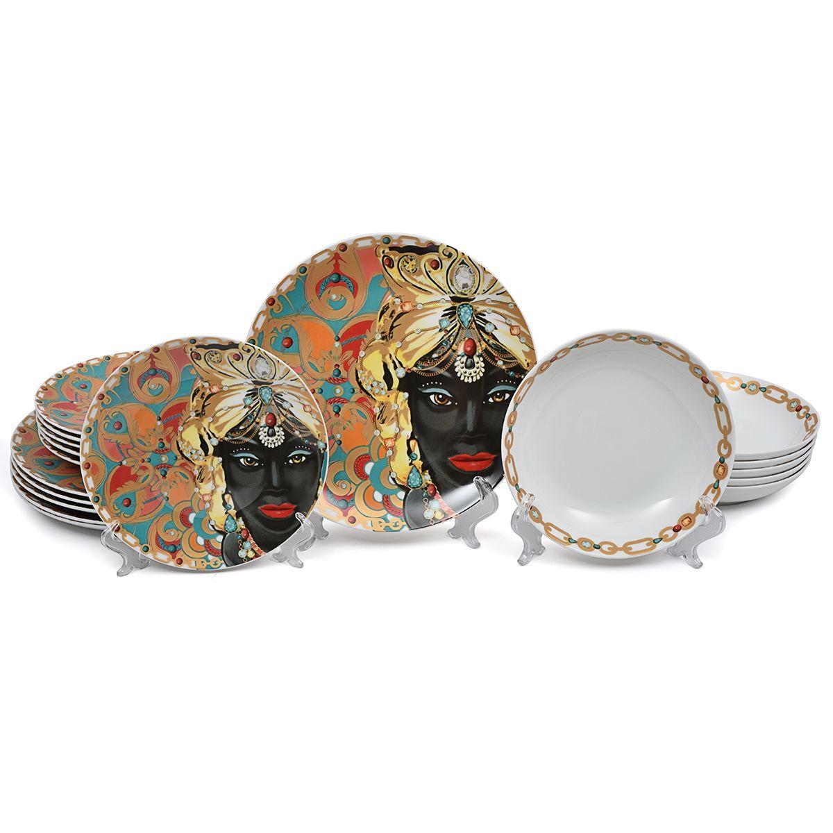 Сервіз Saba — це поєднання Сходу та сучасної естетики в елегантному фарфорі. У набір входять три види тарілок: глибока біла з тонким орнаментом по краю та дві пласкі, прикрашені зображенням загадкової мавританки. Цей сервіз створено для тих, хто цінує не просто посуд, а вироби з історією та характером. Яскравий малюнок гармонійно поєднується зі спокійними фонами, тому набір легко впишеться в будь-який інтер’єр. Обідня, супова й десертна тарілки ідеально поєднуються між собою або з однотонним посудом. Міцний фарфор покритий глазур’ю, що захищає від тріщин і відколів, а малюнок нанесено методом гарячого відбитка, який забезпечує виняткову стійкість.