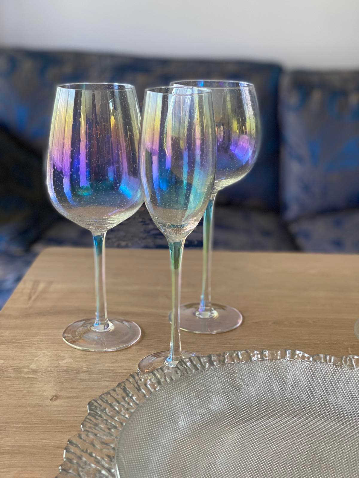 Неймовірна гра світла на поверхні цих келихів і склянок захоплює з першого погляду. Перламутрове покриття з ефектом градієнта змінюється в кожному промені — від ніжного рожевого до глибокого блакитного. Це не просто посуд, а яскравий акцент в інтер'єрі, комплімент вашому смаку та стилю.