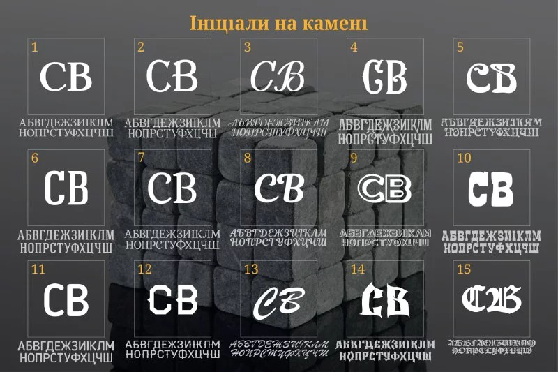 *Гравировка выполняется под заказ — обратите внимание на последние фото в галерее, где представлены пронумерованные макеты для нанесения на элементы набора.