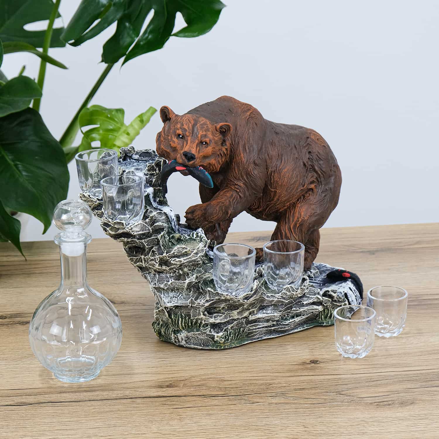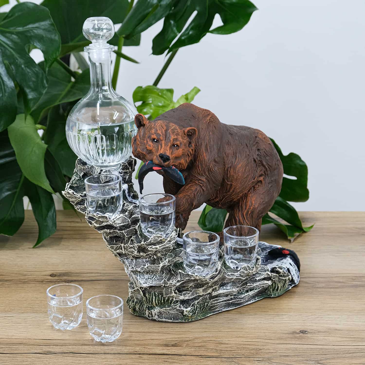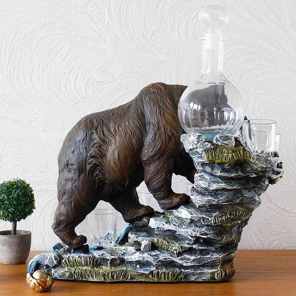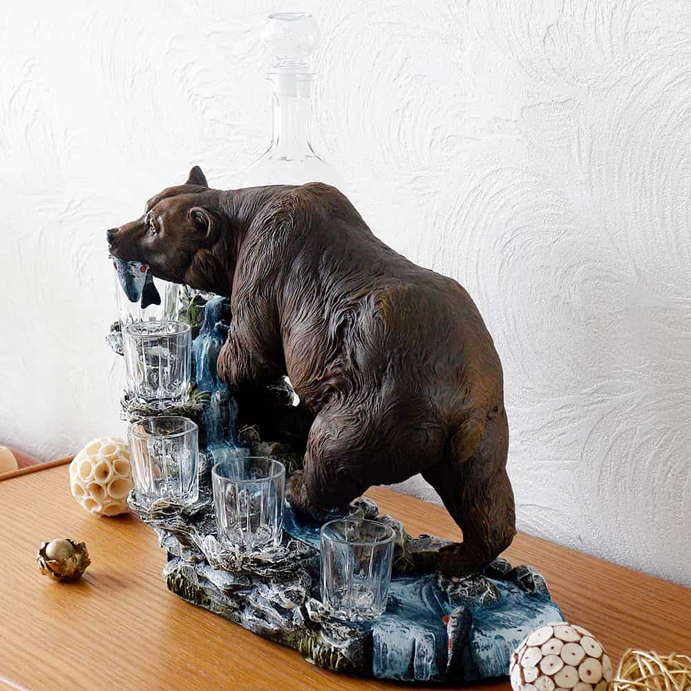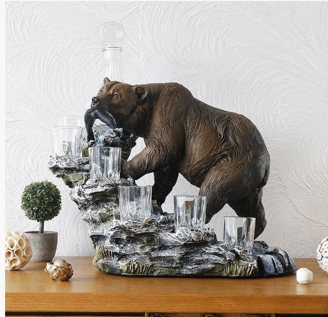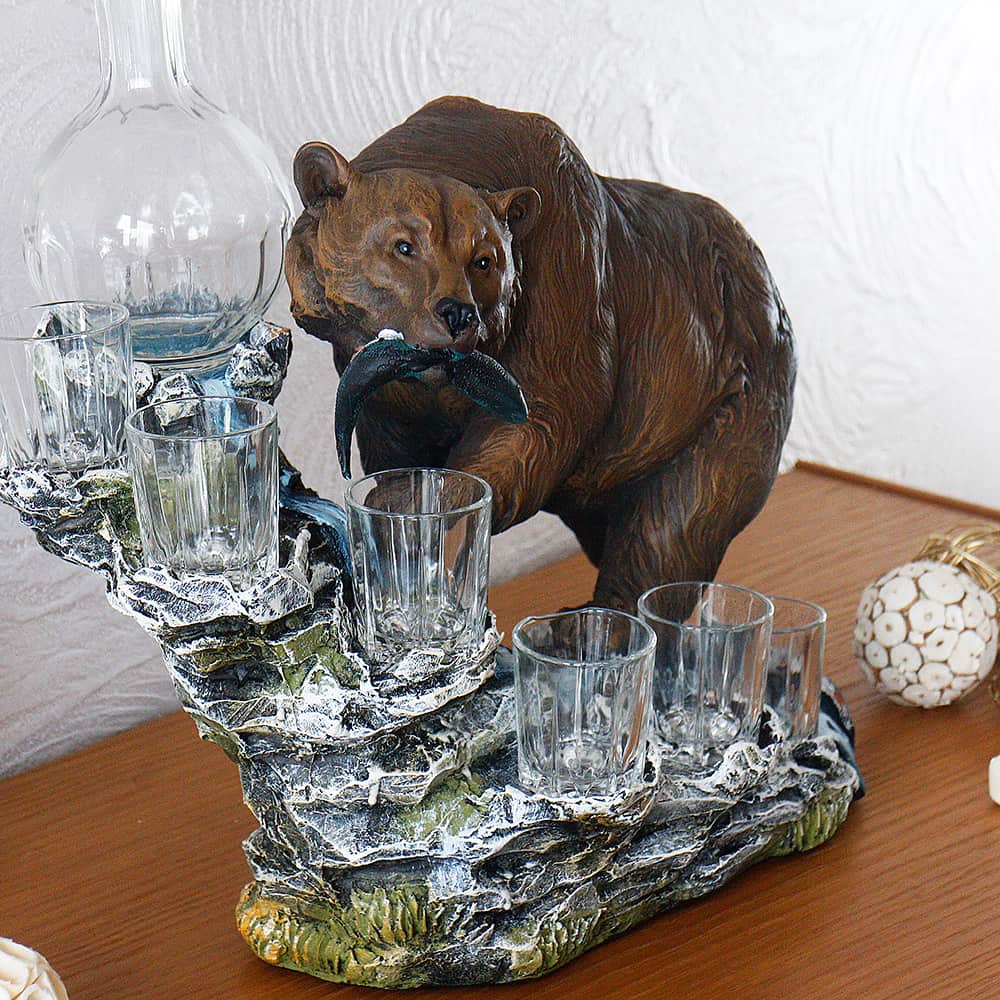 Водочный набор Медведь – оригинальный подарок мужчине ручной работы. Штоф выполнен из безопасного полимерного материала. В комплект входят стеклянные стопки (6 шт.) и графин. Купить отличный подарок дорогому мужчине Вы можете через форму заказа на сайте.