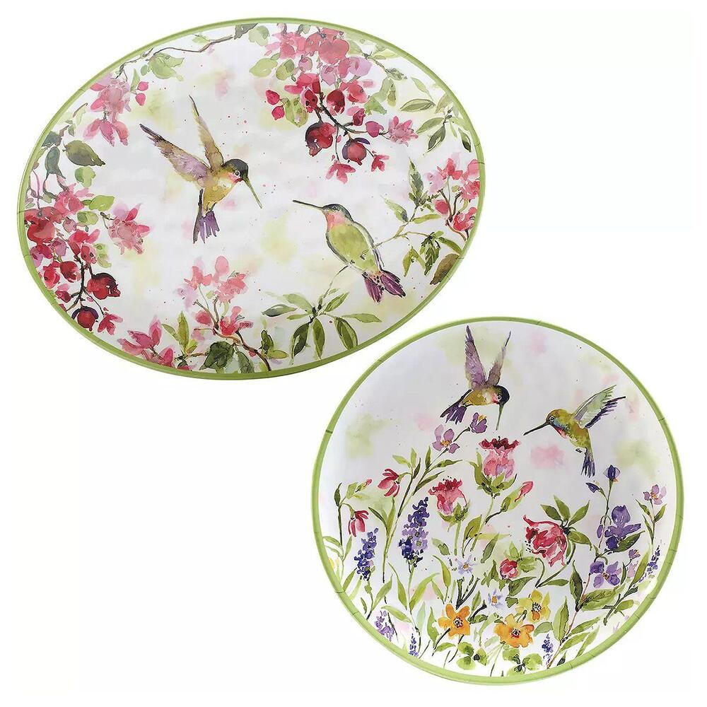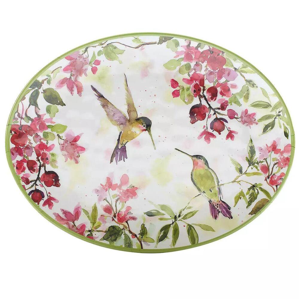 Овальное блюдо из меламина с изображением птичек "Колибри" от Certified International – это элегантное сочетание практичности и изысканного дизайна. Блюдо украшено яркими изображениями колибри среди цветущих ветвей, что придаёт сервировке свежесть и весеннее настроение. Благодаря лёгкому и прочному материалу, блюдо отлично подходит как для повседневного использования, так и для праздничных мероприятий или пикников на природе.