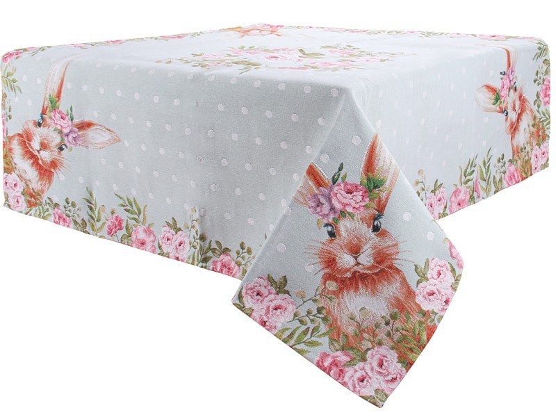Пасхальная гобеленовая скатерть прямоугольная Кролик 140х260 см