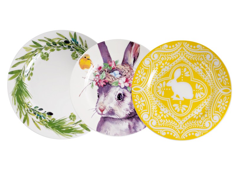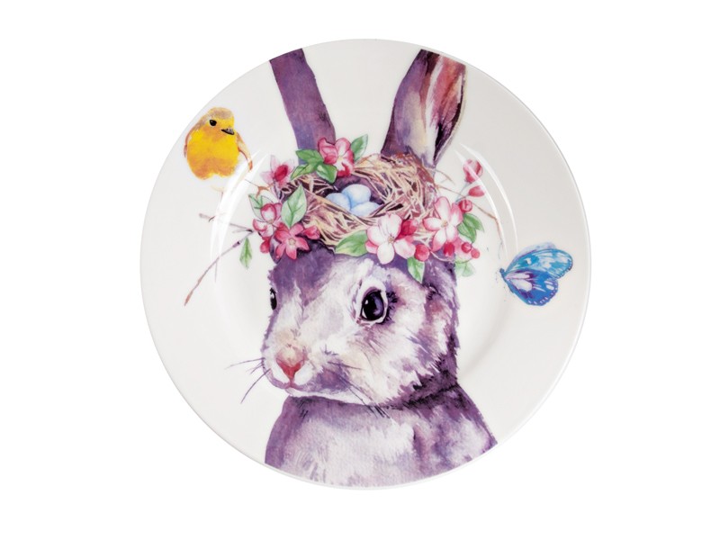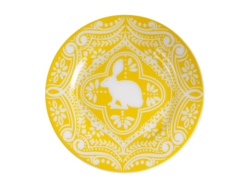 2 тарелки с изображением узоров и кролика размером 19 см, сделают ваш стол неповторимым и ярким.