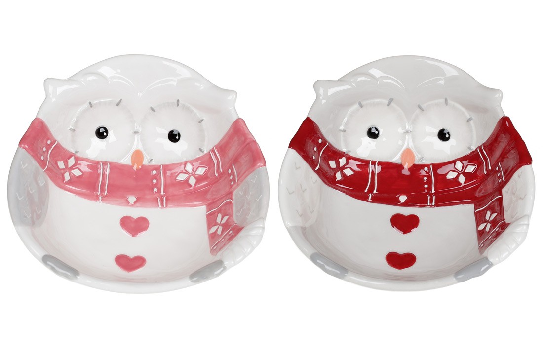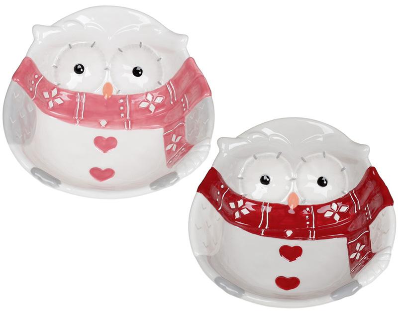 Пиалы из керамики выполнены в нежных тонах с яркой изюминкой - цветным шарфиком. В наборе 2 дизайна - совушка в красном и розовом шарфике.