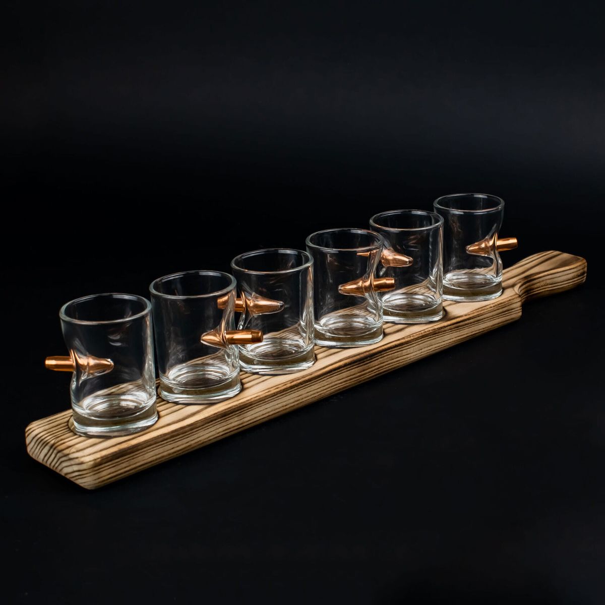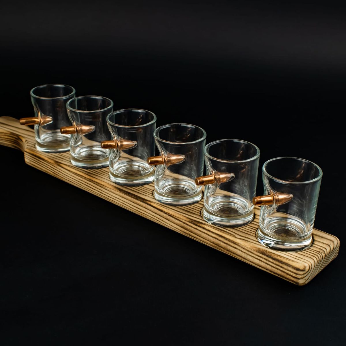 Подарочные стеклянные стопки с пулей 6 штук 55 мл на подставке
