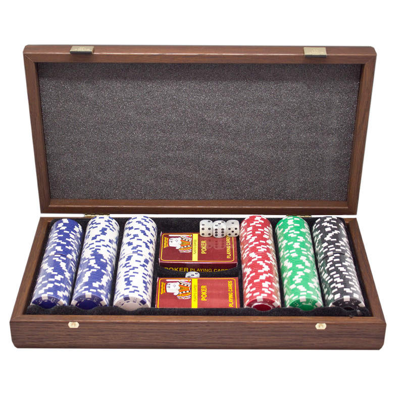 Набор для игры в покер в реплике из темного орехового дерева. Эти роскошные наборы для игры в покер изготовлены вручную из дерева с бархатным внутренним подносом. В комплекте 300 высококачественных фишек для покера 11,5 г и 2 набора игральных карт - идеальный подарок для серьезного игрока! Простой, но элегантный; наша коллекция наборов для покера - это все, что вам нужно для веселого вечера с друзьями.