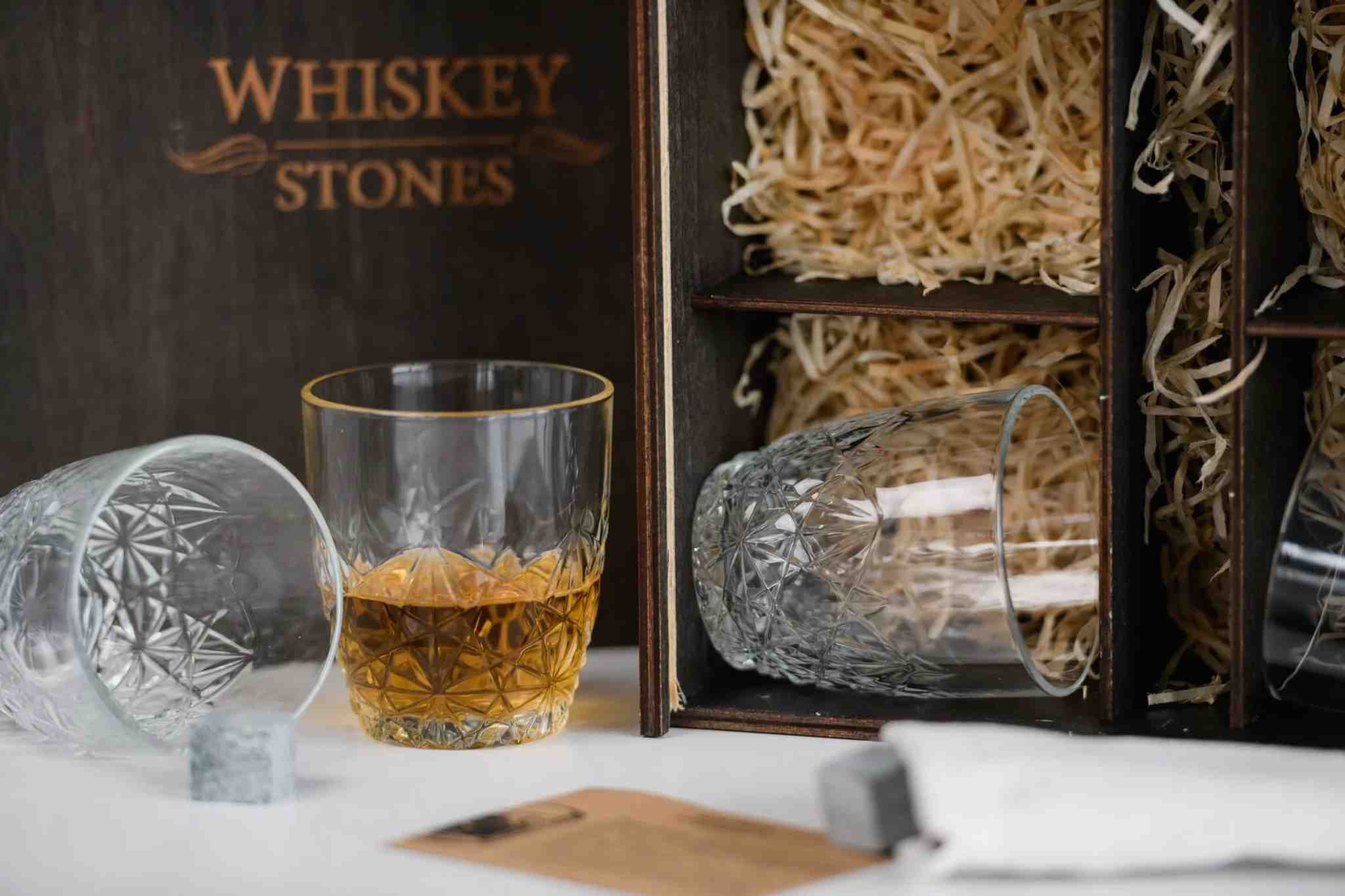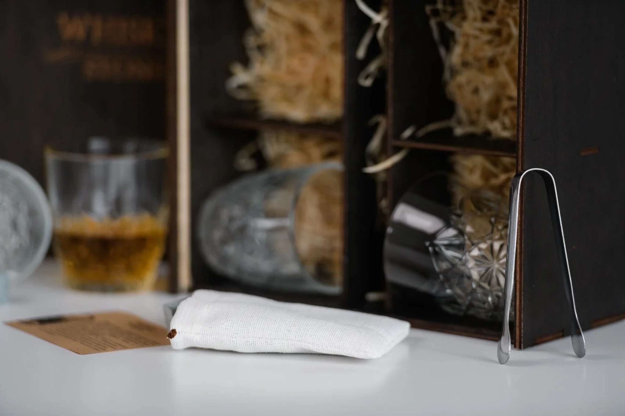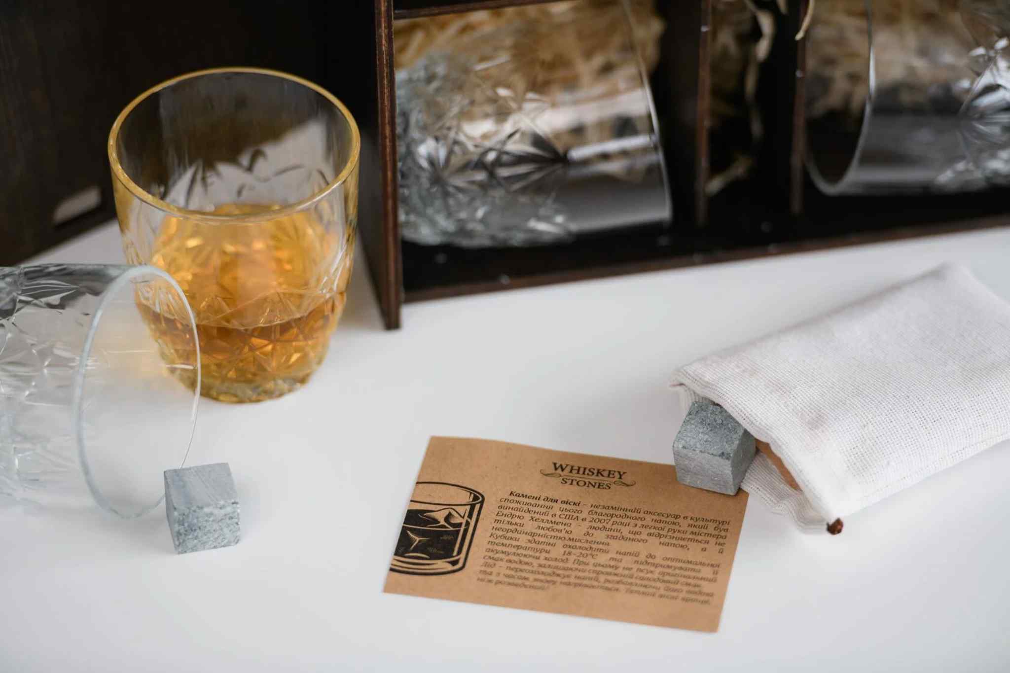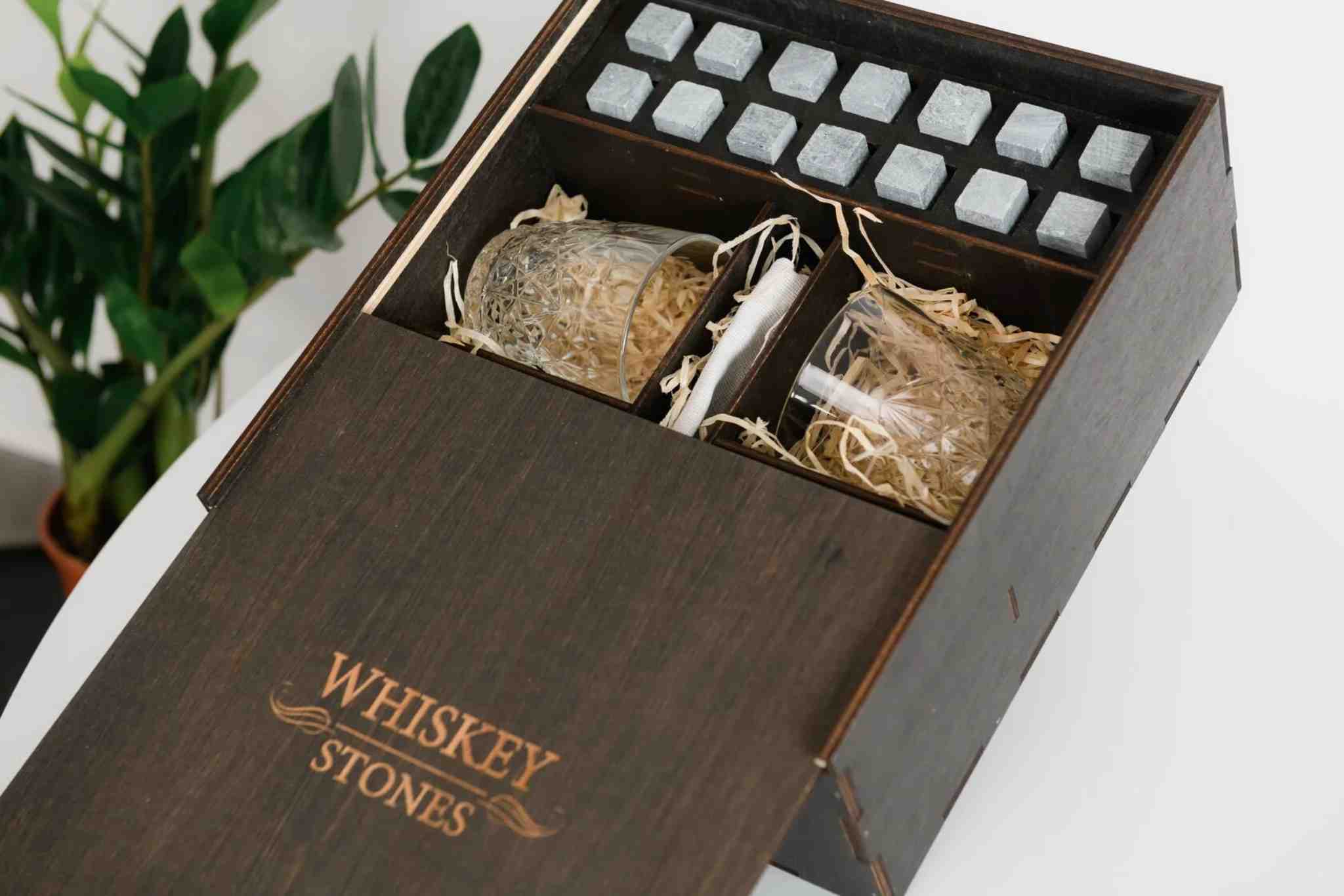 — Индивидуальная гравировка: без гравировки / на камнях / на крышке коробки / на камнях и крышке / на камнях, крышке и стаканах / на камнях, крышке, стаканах и подставках