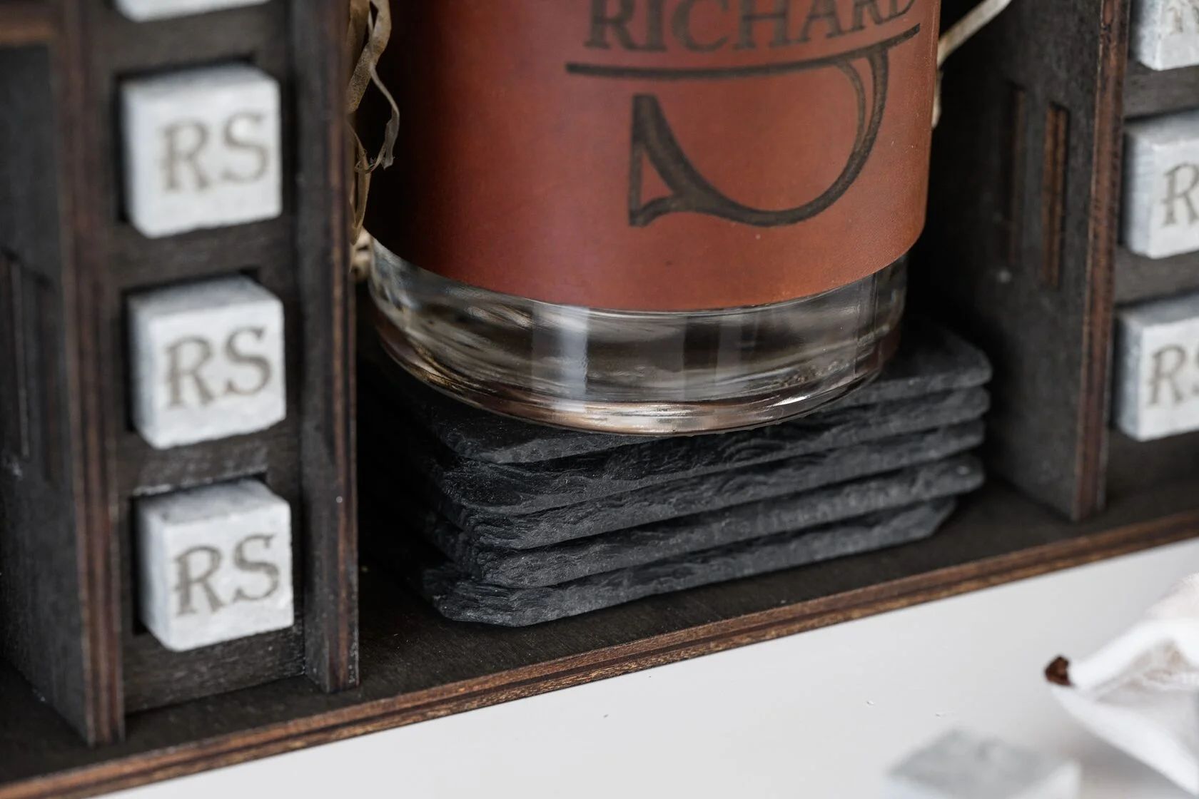— Подставки под стаканы: без подставок / кожаные / сланцевые
