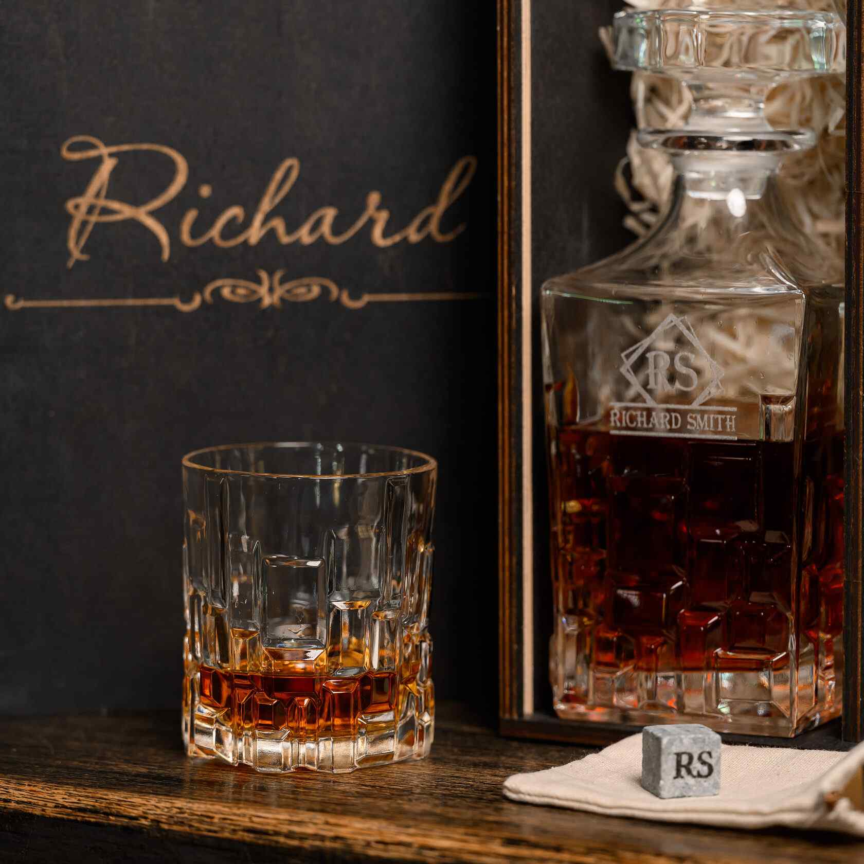 Подарочный набор для виски № 7 RCR Cristalleria Italiana ETNA — элегантное решение для истинных ценителей напитков. Чистые геометрические формы декантера и стаканов из прочного итальянского хрустального стекла сочетаются с практичностью стеатитовых камней, которые охлаждают виски, не разбавляя вкус. Такой комплект — идеальный мужской подарок с возможностью гравировки, создающий атмосферу статусного уюта и утончённого удовольствия.