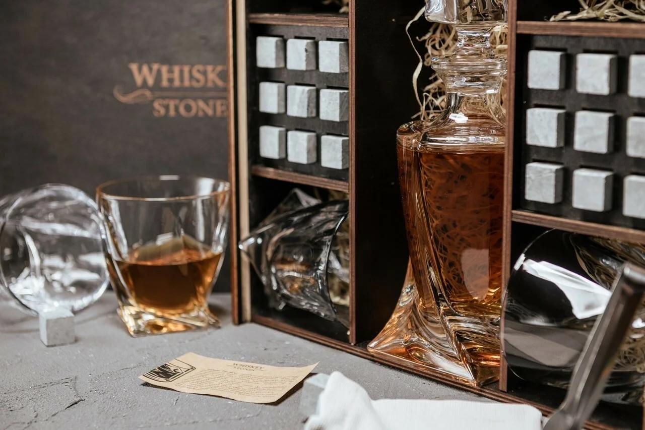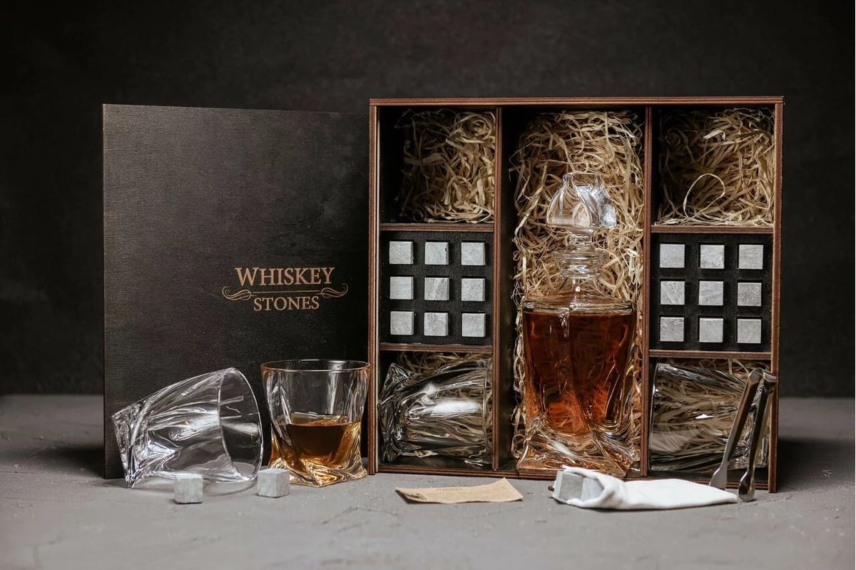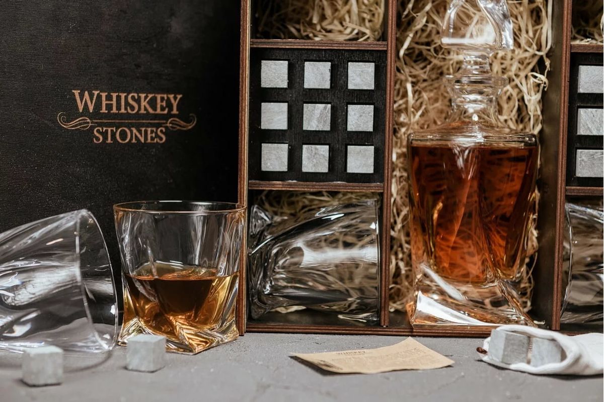 Подарочный набор камней для виски № 8 Bohemia Quadro — это стильное решение для тех, кто ценит эстетику и вкус. Прозрачный декантер с лаконичными гранями и фирменными стаканами идеально сочетается с базальтовыми камнями для охлаждения виски. Всё это аккуратно уложено в деревянный пенал и дополнено щипцами и мешочком для хранения — комплект готов стать премиальным подарком мужчине, другу, коллеге или партнеру по бизнесу.