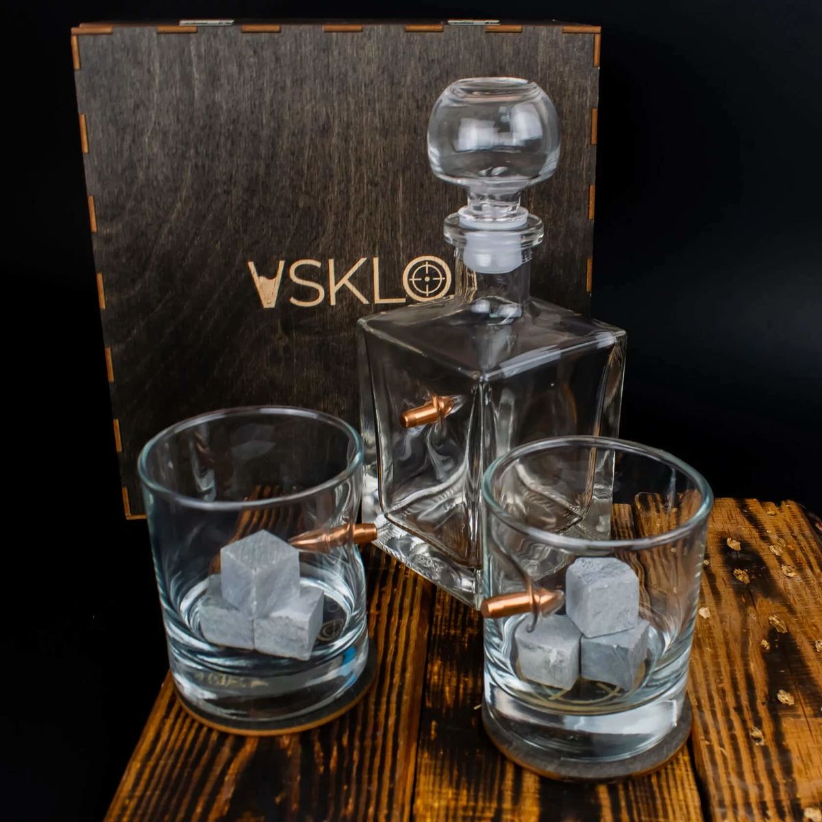 Подарочный набор для виски с пулей и камнями Два друга