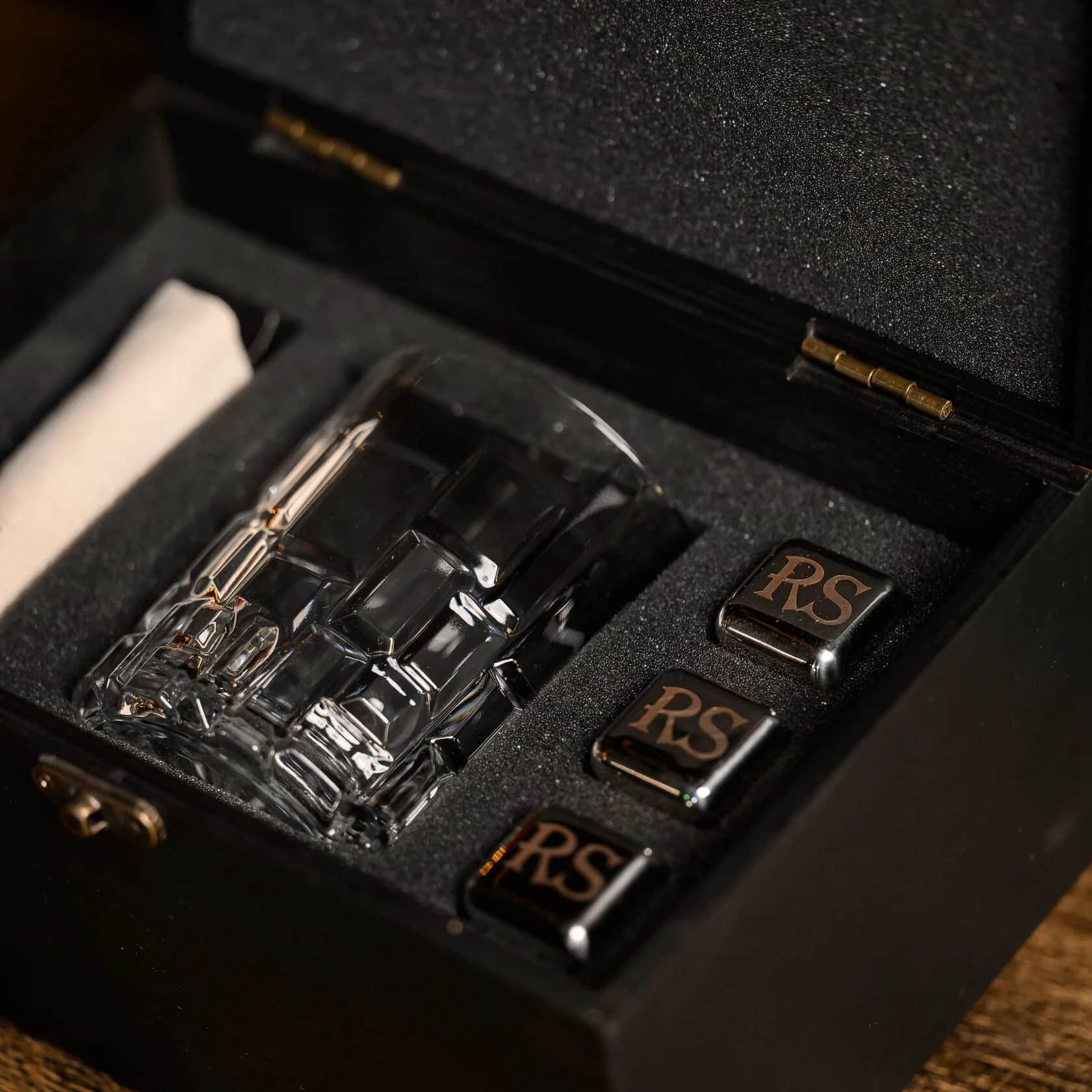 Подарочный набор для виски «Стальной» №1 RCR Cristalleria Italiana ETNA — это эффектное сочетание итальянского дизайна и индивидуального подхода. В центре — тяжёлый стеклянный стакан с фирменным рельефом коллекции ETNA, созданной на фабрике RCR в Тоскане. Возможность персональной гравировки делает набор особенным и запоминающимся.