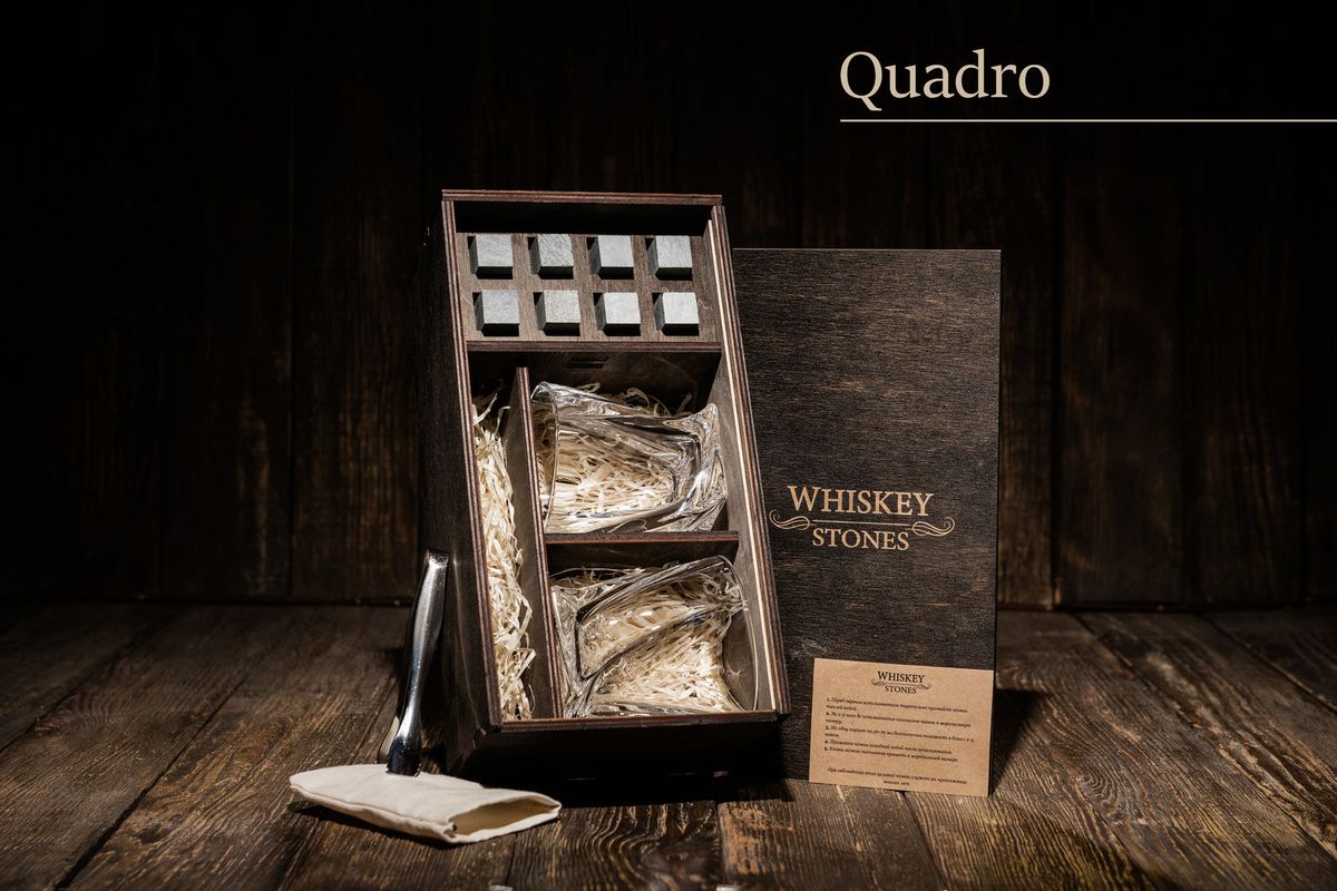 — Индивидуальная гравировка: без гравировки / на камнях / на крышке коробки / на камнях и крышке / на камнях, крышке и стаканах / на камнях, крышке, стаканах и декантере / на камнях, крышке, стаканах, декантере и подставка