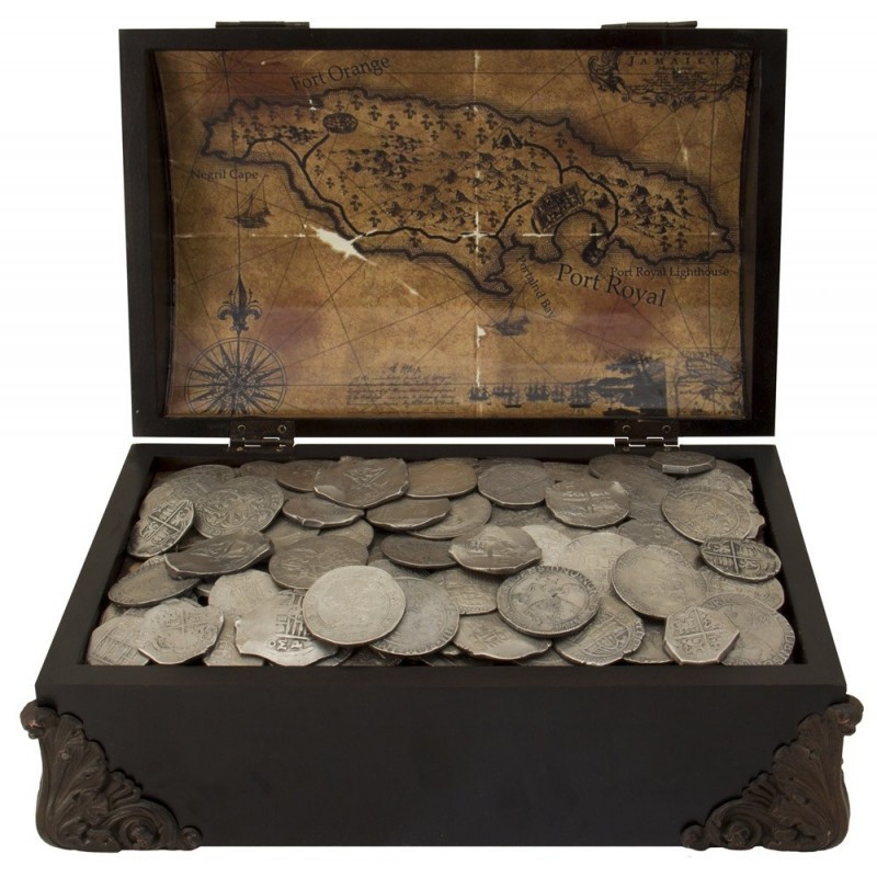 Этот пиратский сундук для тех, кто в детстве зачитывал до дыр "Остров сокровищ" и "Одиссею капитана Блада". Тот, кто читал замечательную повесть Роберта Стивенсона "Остров сокровищ", наверное помнит одноногого Сильвера и его попугая. Пернатый спутник пирата, будучи в хорошем расположении духа, часто покрикивал: "Пиастры! Пиастры! Пиастры!" Что же это были за монеты, так нравившиеся тогдашним джентельменам удачи?