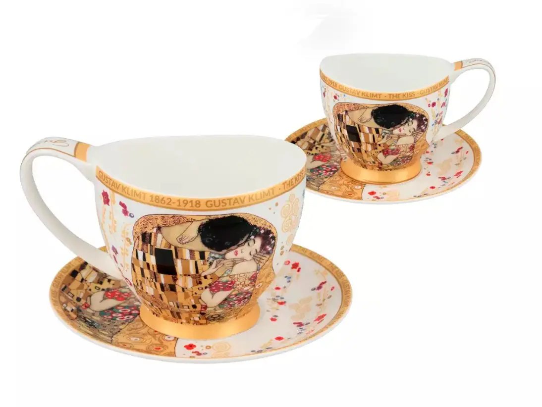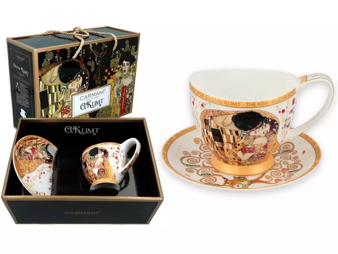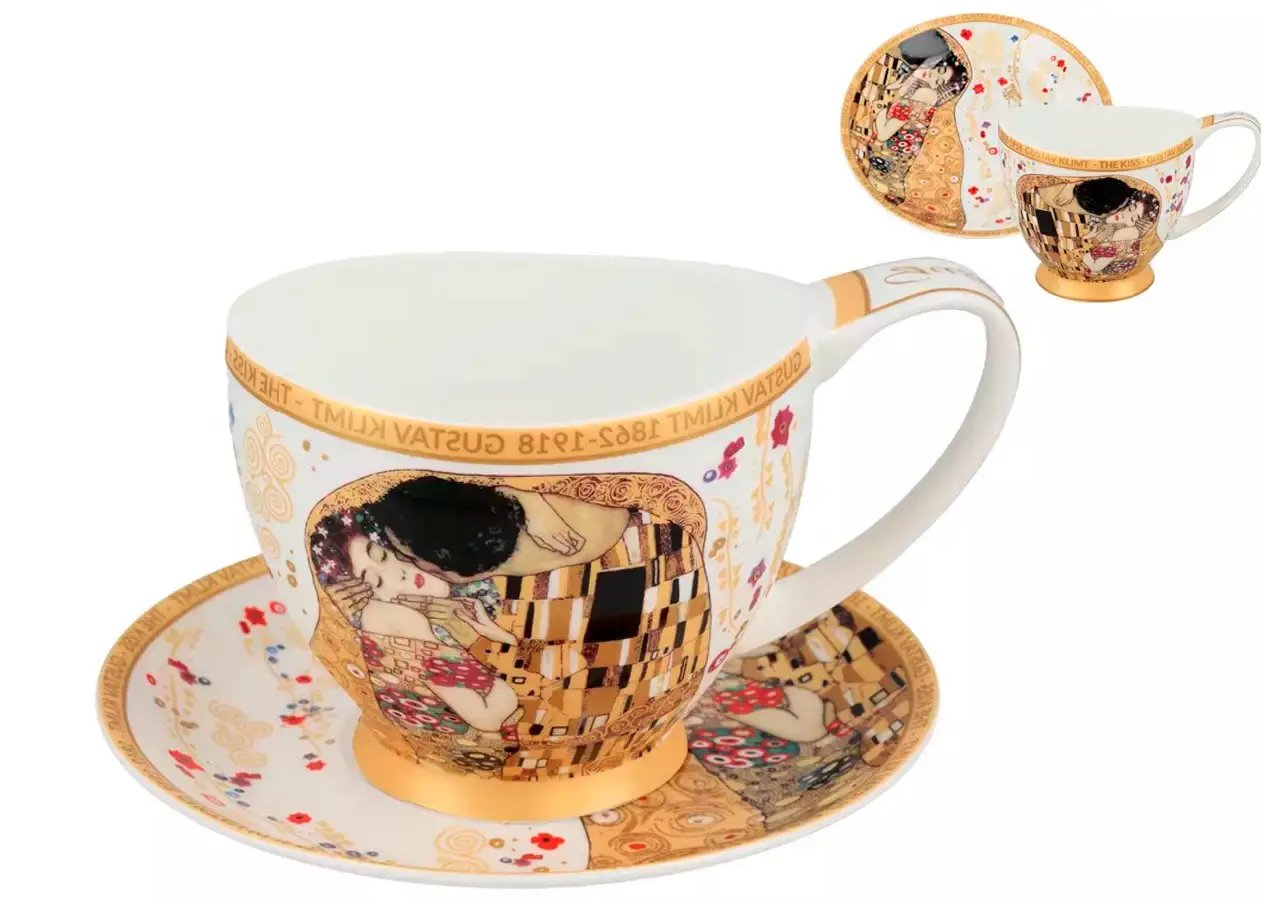 Подарункова чайна пара порцелянова білий фон Carmani Г. Клімт Поцілунок 350 мл