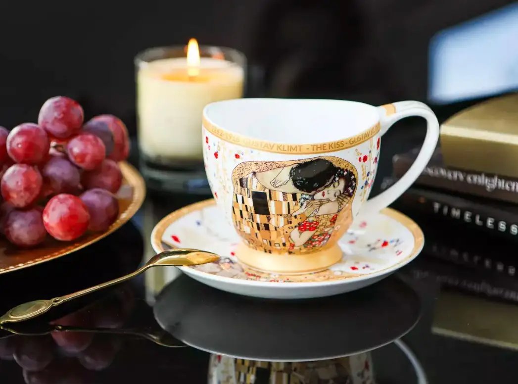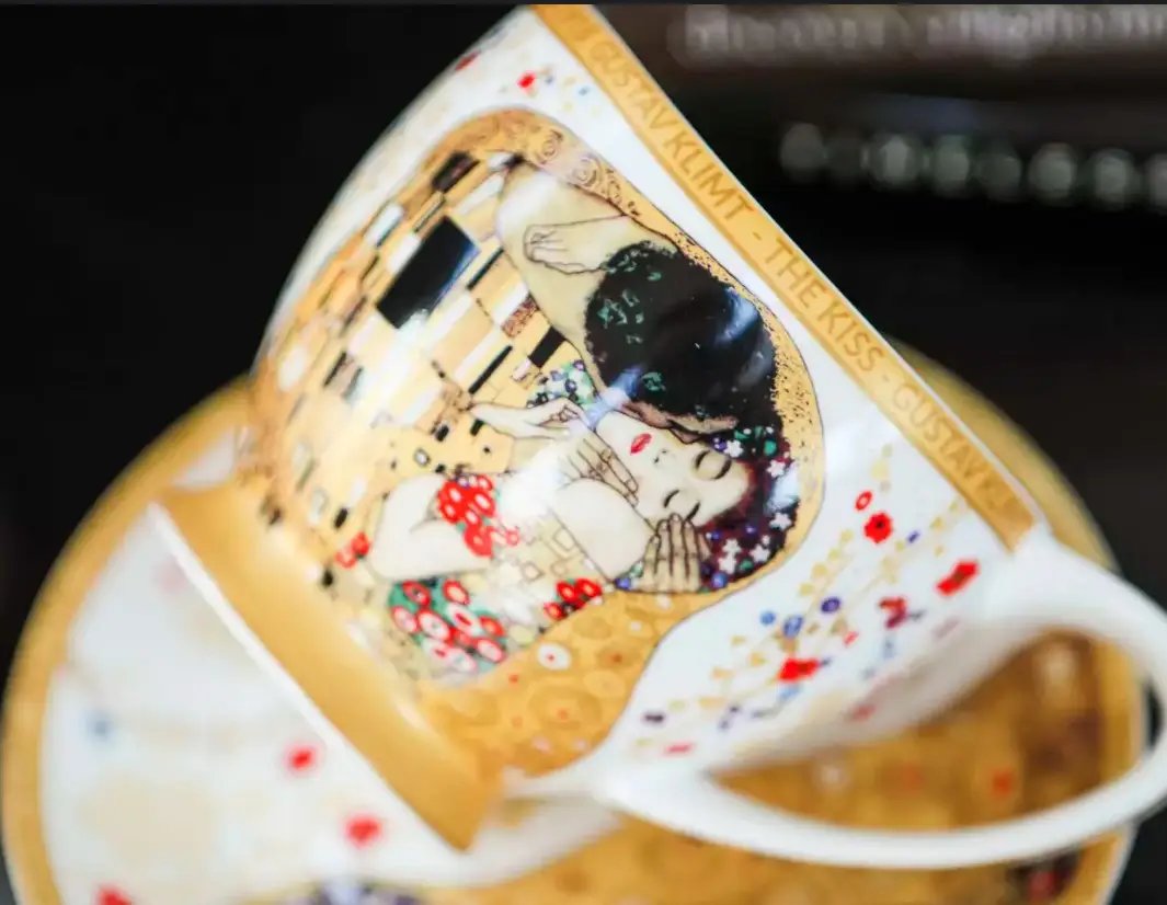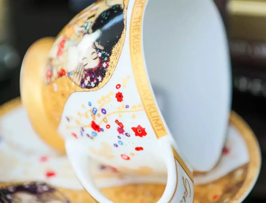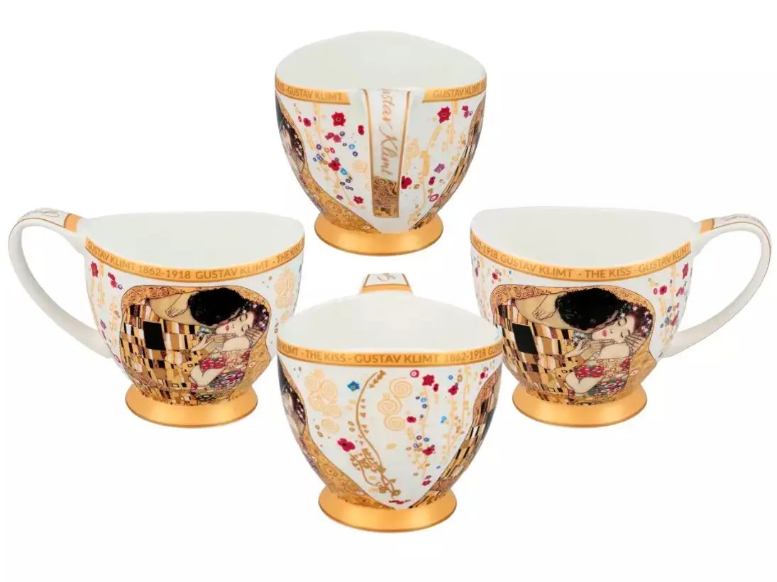 Подарункова чайна пара порцелянова білий фон Carmani Г. Клімт Поцілунок 350 мл