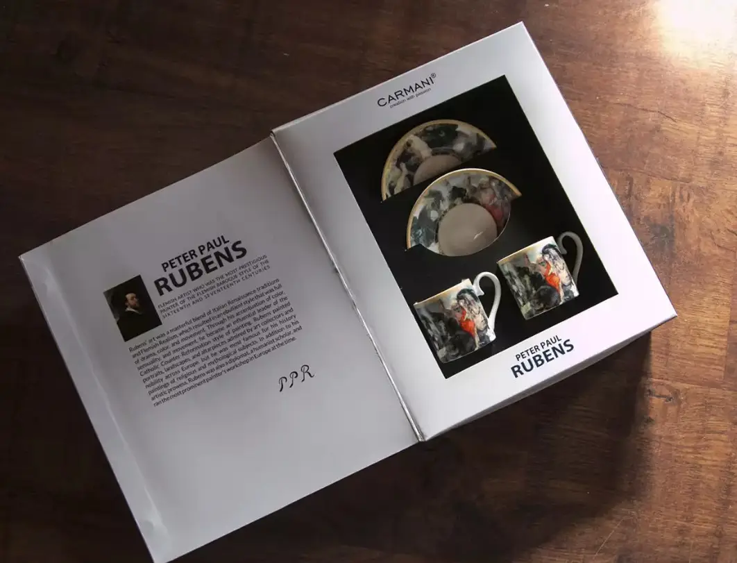 Набір упакований у подарункову коробку з біографією художника, що робить його чудовим варіантом для презенту. Він підійде тим, хто цінує живопис, класику й незвичайні деталі в повсякденних речах. Це не просто посуд, а естетика в дії — ранок, що починається з витвору мистецтва.