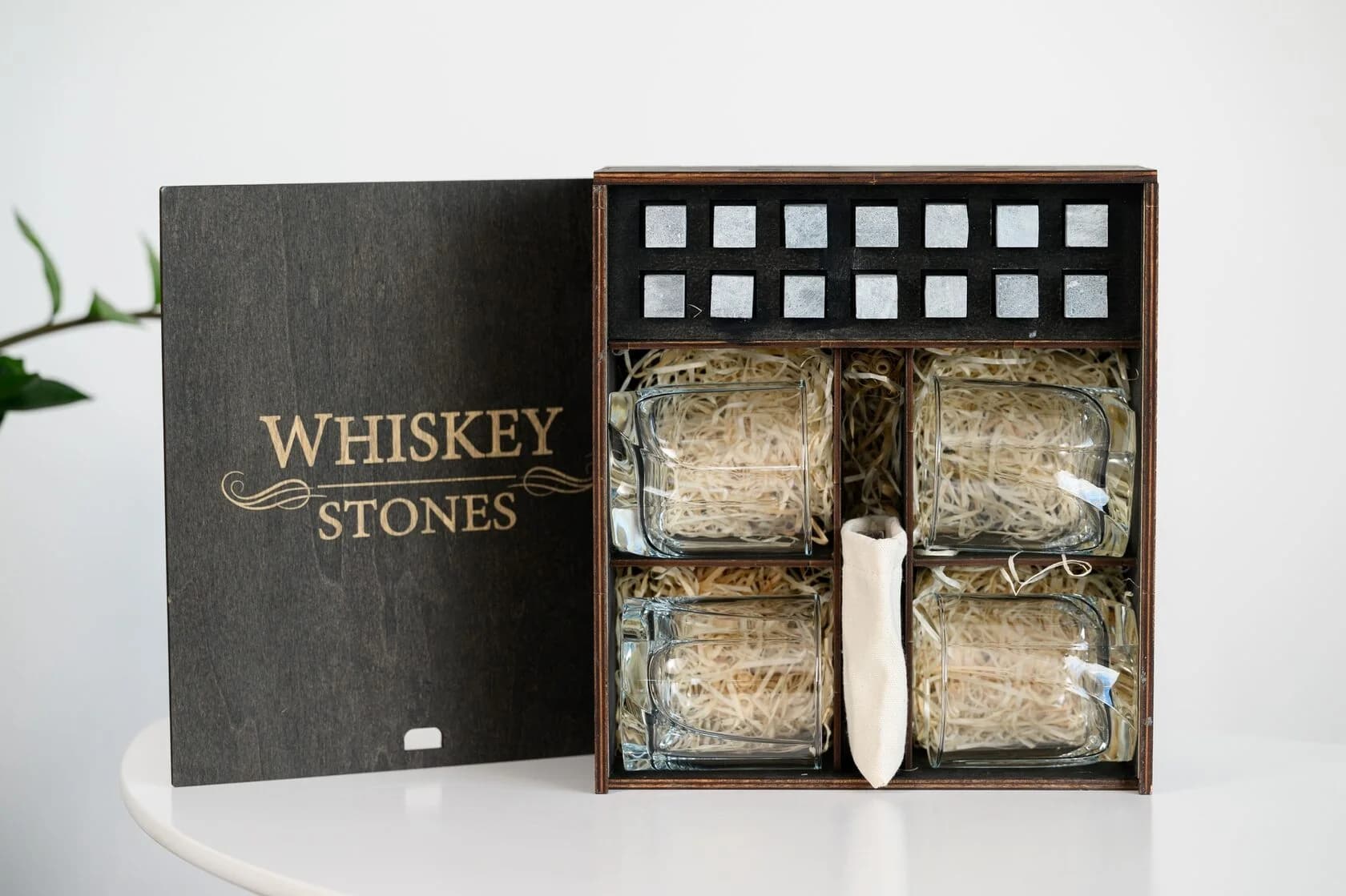 Подарунковий набір для віскі № 4 Pasabahce Luna на 4 персони (граивровка на заказ)