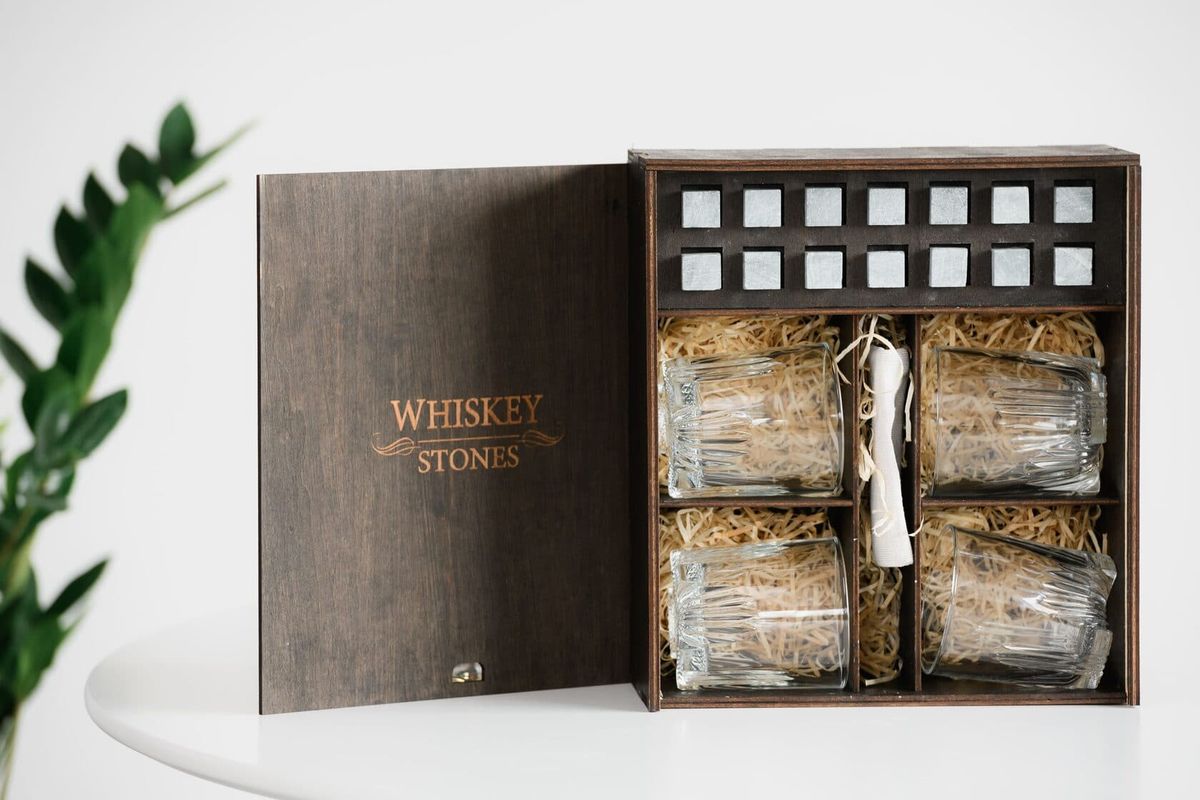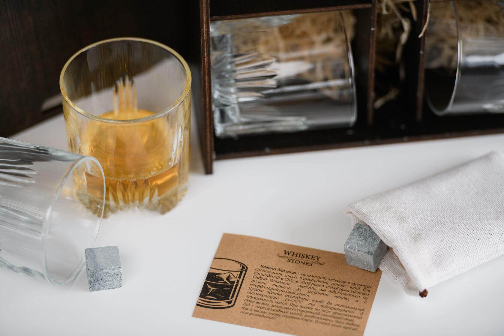 — Індивідуальне гравіювання: без гравіювання / на каменях / на кришці коробки / на каменях і кришці / на каменях, кришці та склянках / на каменях, кришці, склянках і підставках