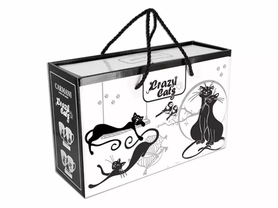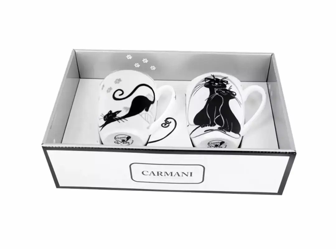 Подарочные наборы Carmani Crazy Cats — это не просто посуда, а настоящее настроение в фарфоре. Стильные чёрно-белые коты с выразительными мордочками и задорными хвостами будто сошли со страниц дизайнерского комикса. Эти персонажи заряжены харизмой, юмором и характером — они не только украсят чаепитие, но и моментально поднимут настроение.