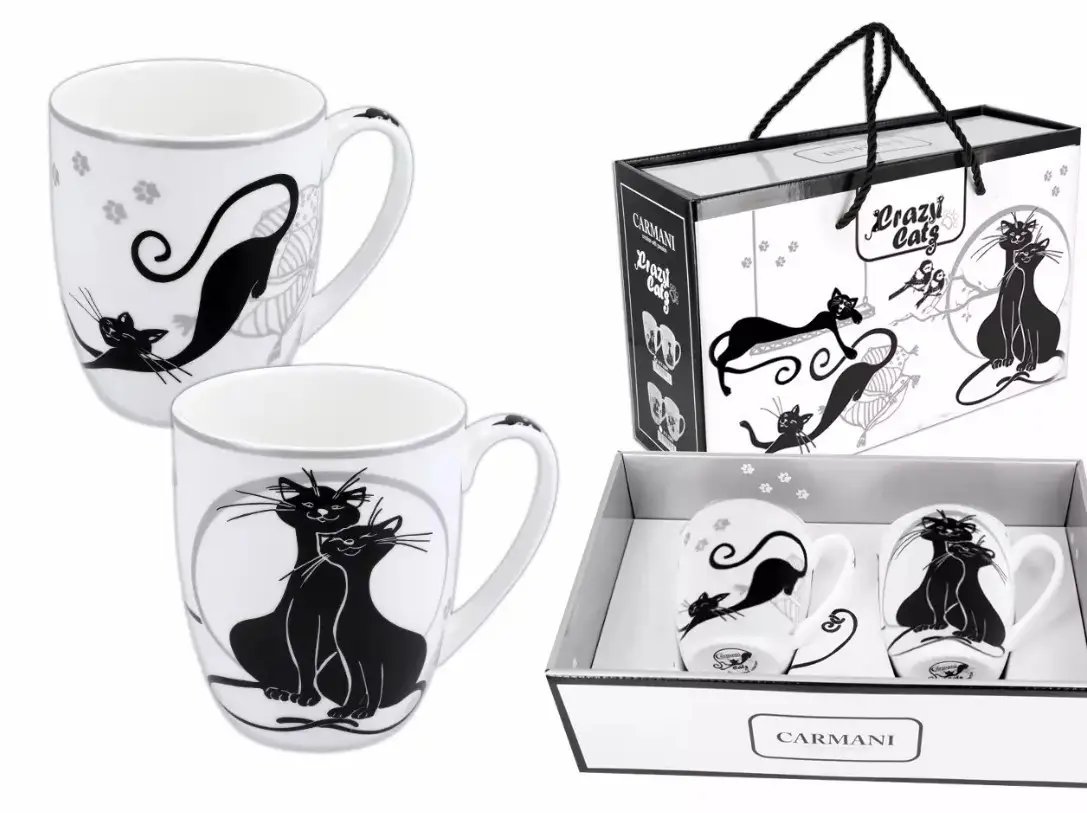 Подарунковий набір фарфорових кружок Carmani Crazy Cats, 2 шт по 440 мл