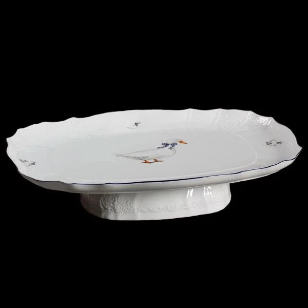 Поднос фарфоровый белый прямоугольный с рисунком Bernadotte Гуси 40 см с синей обводкой