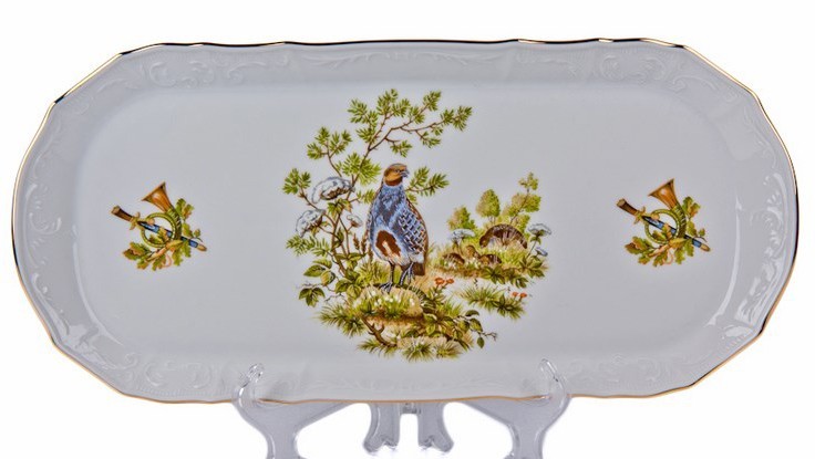 Изделие выполнено стиле серии Bernadotte Охота – идеальную белизну дополняет тиснение и золотая кайма.