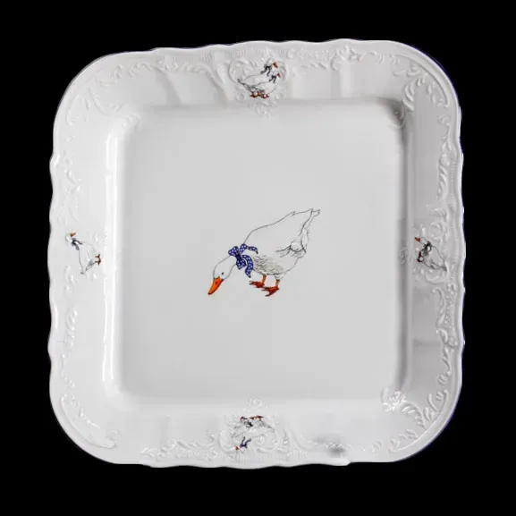 Поднос квадратный фарфоровый с рисунком Bernadotte Гуси 26 см