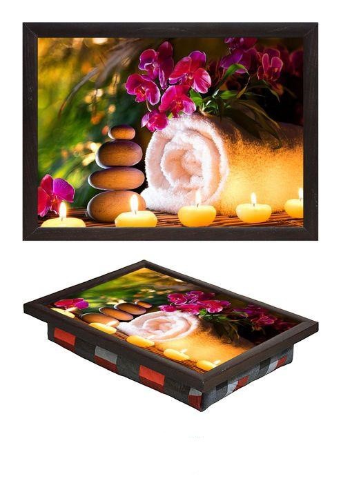 Поднос на подушке передает настроение легкости, отдыха, романтики. Атмосфера праздника, влюбленности переданная красивой картинкой обязательно напомнит о приятных минутах незабываемых собственных подобных вечеров.