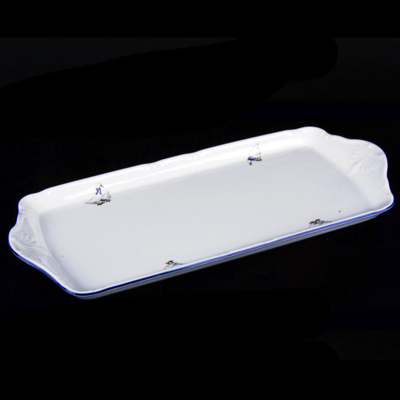Поднос прямоугольный фарфоровый с рисунком Thun Constance Гуси 39 см с синей окантовкой