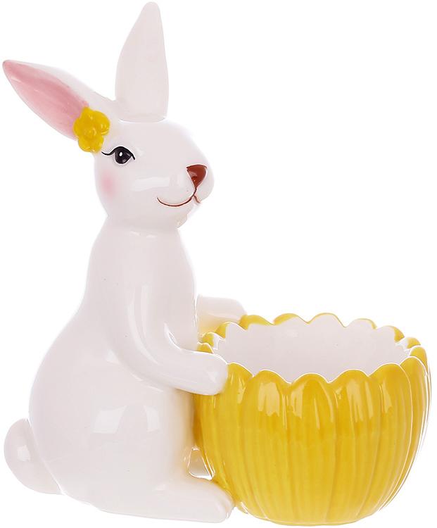 Подставка для яйца керамическая белый\желтый " Bunny Bloom" 13 см