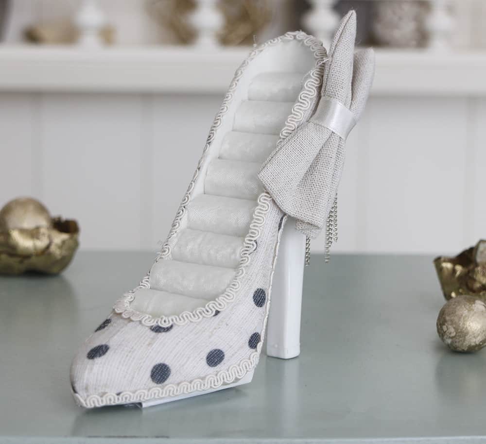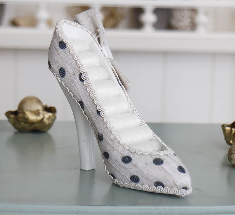 Подставка под кольца текстиль Туфелька бежевая 14*5*12 см