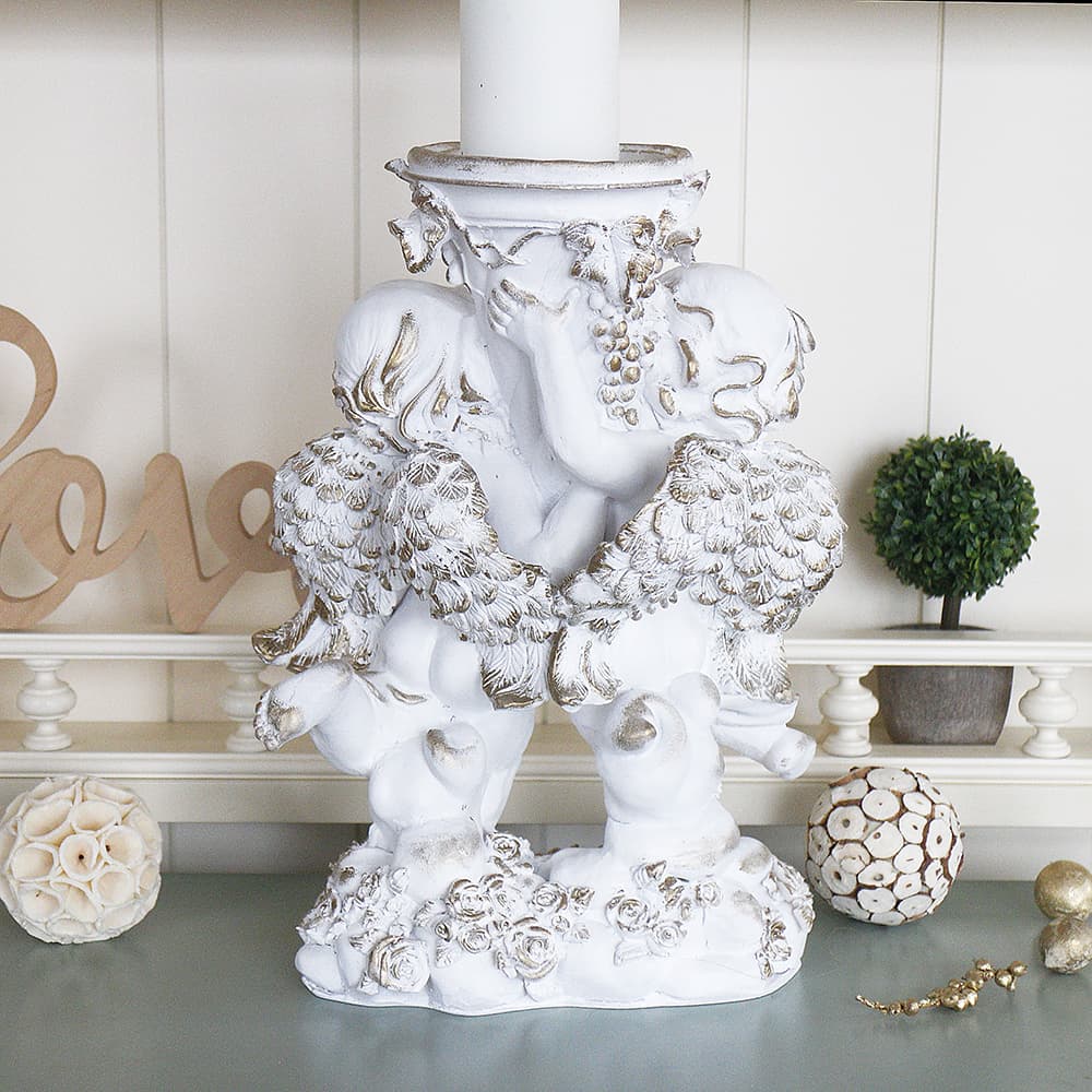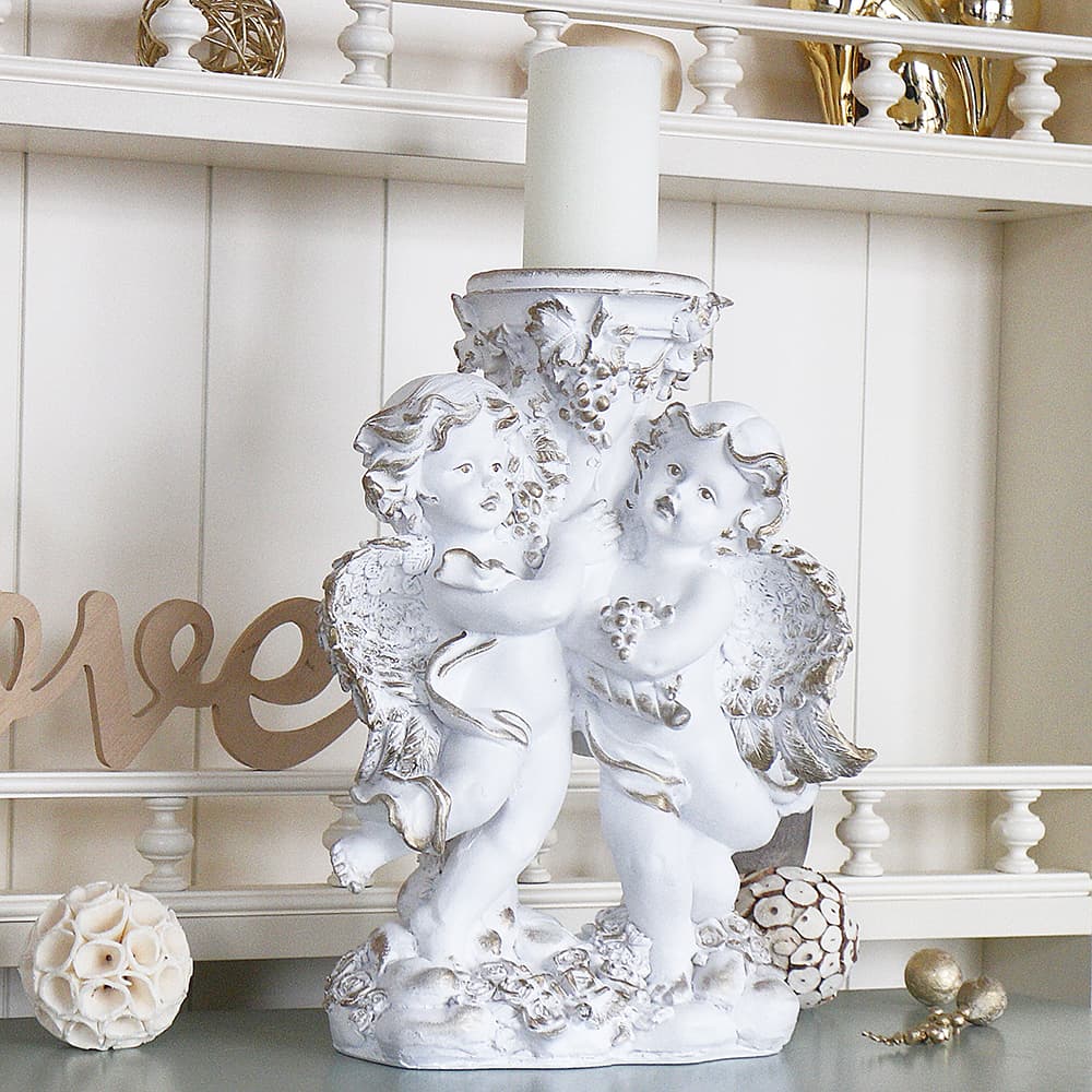Подсвечник белый настольный "Пара ангелов" 31х22х15 см