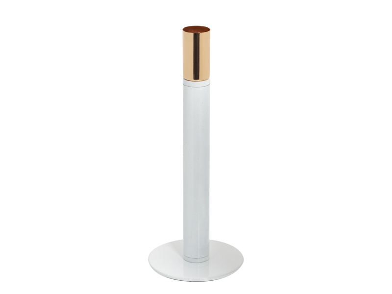 Подсвечник из металла высотой 20 см — это элегантный аксессуар, который подчеркнёт атмосферу уюта и гармонии в доме. Его современный дизайн с гладкой цилиндрической формой и золотистой верхней частью выглядит стильно и изысканно, делая его универсальным элементом декора для любого интерьера.