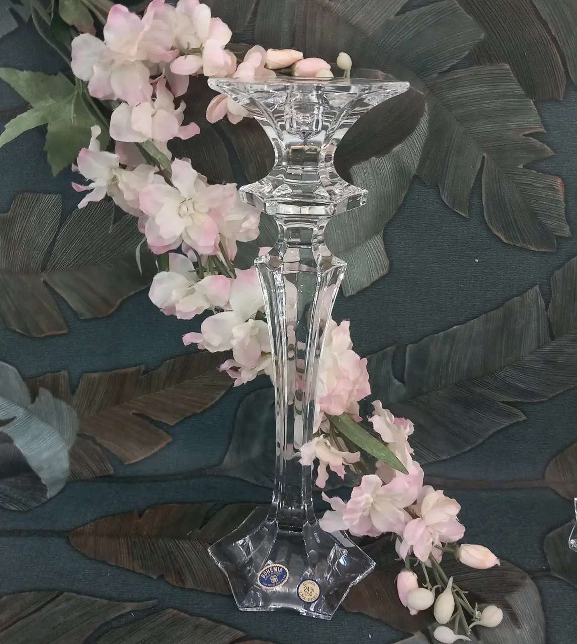 Виготовлений із високоякісного богемського скла, підсвічник відбиває світло, заломлюючи його в безліч блисків, які оживляють простір і надають йому урочистості. Міцний матеріал гарантує довговічність і надійність виробу.