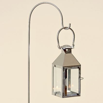 Дизайнерский фонарь в виде домика с боковой дверцей для удобного размещения свечи. Данная модель выполнена на ножке с крючком для установки в саду или лужайке. Стенки выполнены из прозрачного стекла.