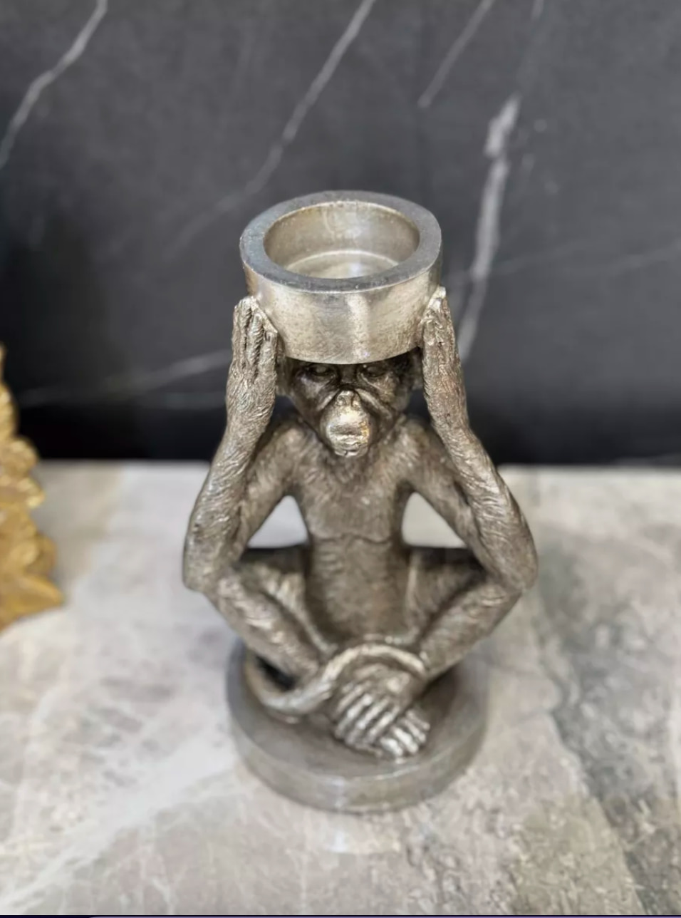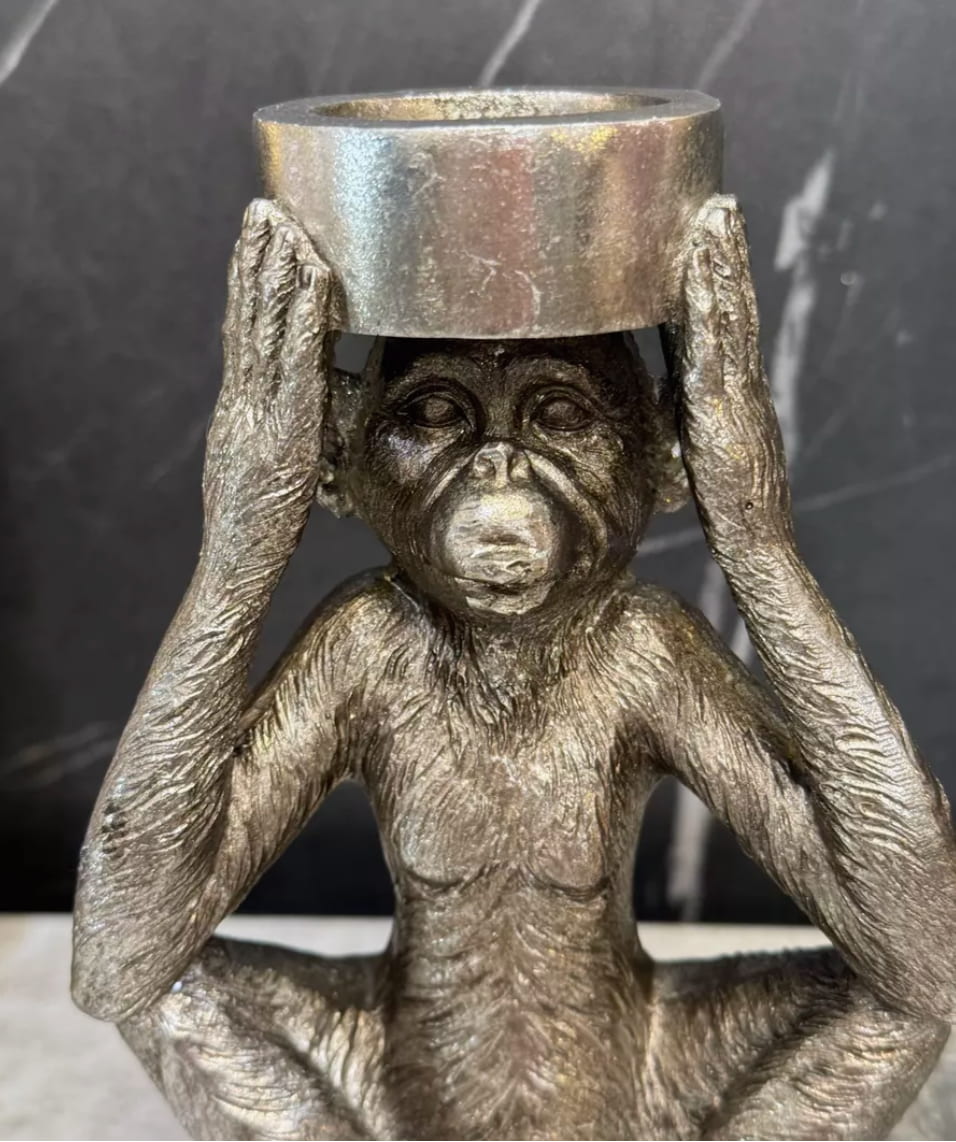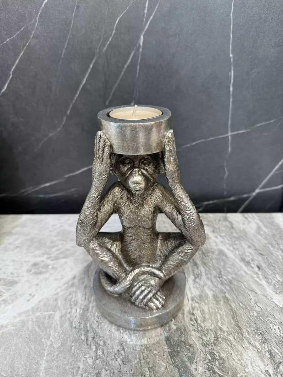 Свічник на 1 свічку з полістоуну Мавпянка, Колір: Срібний