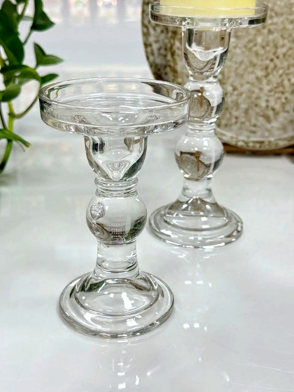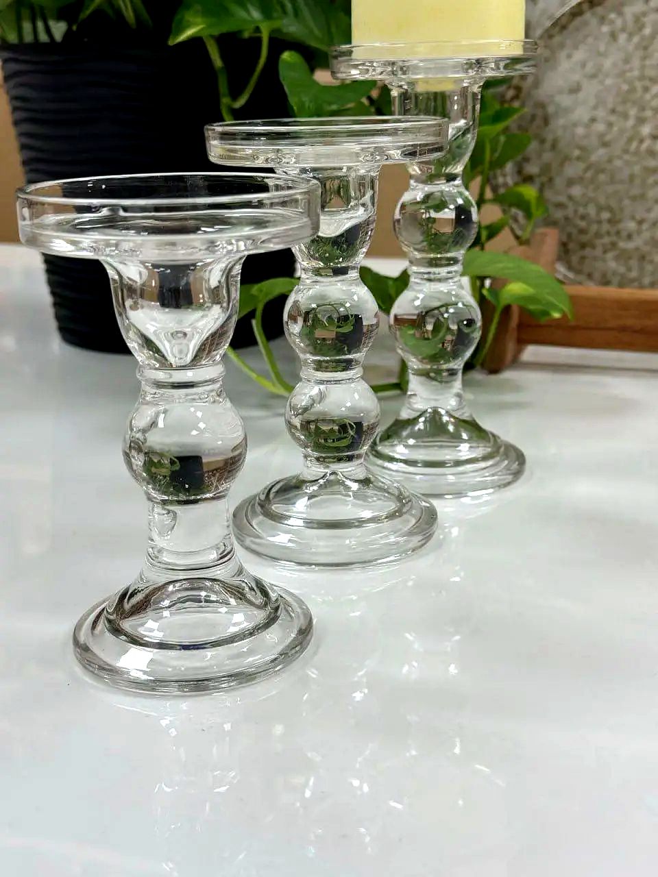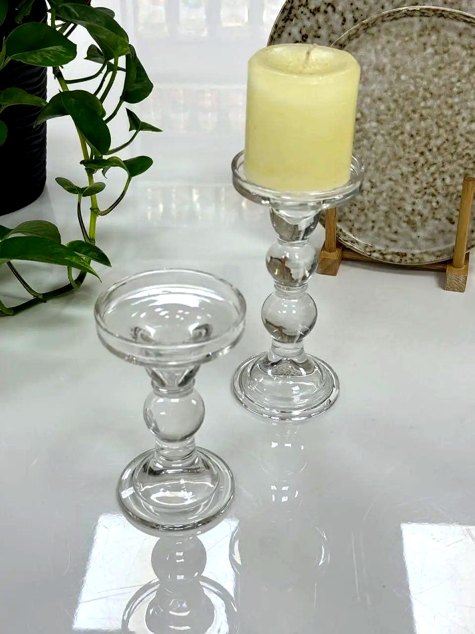 Они отлично сочетаются как с вытянутыми свечами-стержнями, так и с широкими свечами-цилиндрами. Прозрачное стекло создаёт эффект чистоты и воздушности, не перегружая пространство и добавляя свет. Благодаря разной высоте моделей, вы можете создавать интересные композиции — будь то на обеденном столе, каминной полке или даже в витрине магазина.