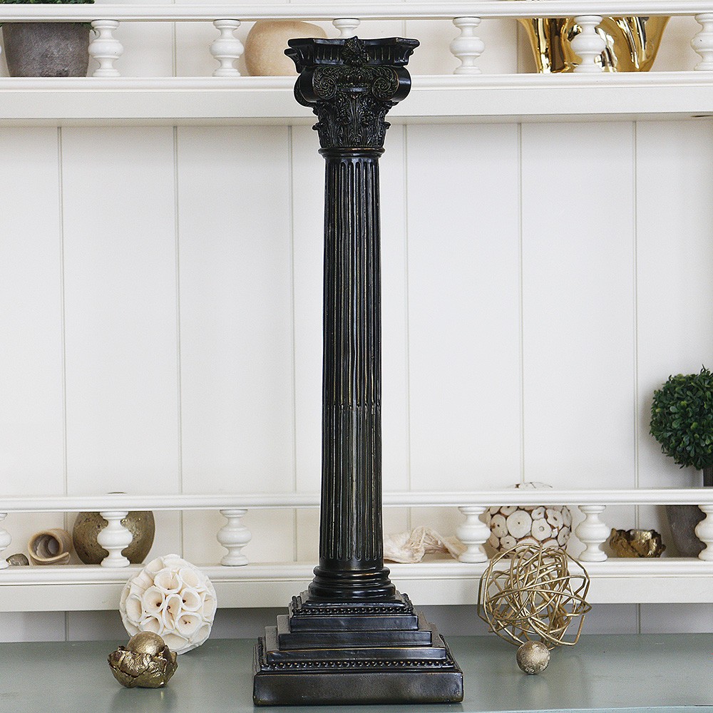Подсвечник в античном стиле с искуственного камня (поличтоун) имеет размер 13х13х43 см