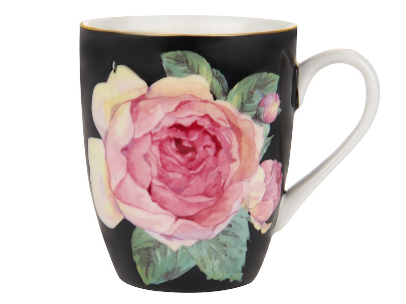Порцелянова чайна чашка чорна Півонії 370 мл