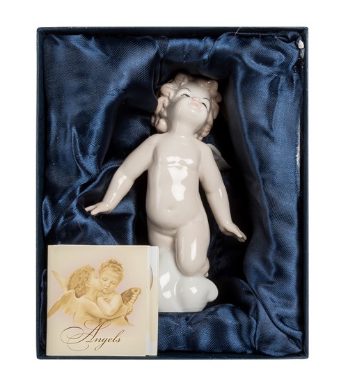 Фігурка ангелочка виготовлена з високоякісної порцеляни в стильному дизайні, покритого ніжними фарбами глазурі та глянцю. Це чудовий подарунок на будь-яке свято для коханої людини. Крильця ангела створюють відчуття доброї наївності, легкості та безпосередності. М'які та плавні лінії роблять риси обличчя фігурки дуже милими.