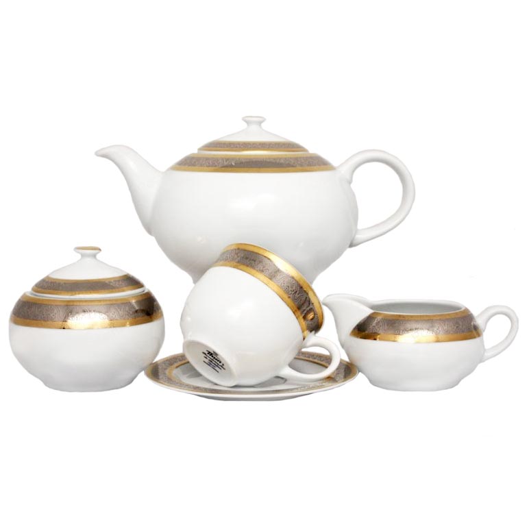 Чайний сервіз Opal Широкий кант платина, золото — вишуканість для особливих моментів