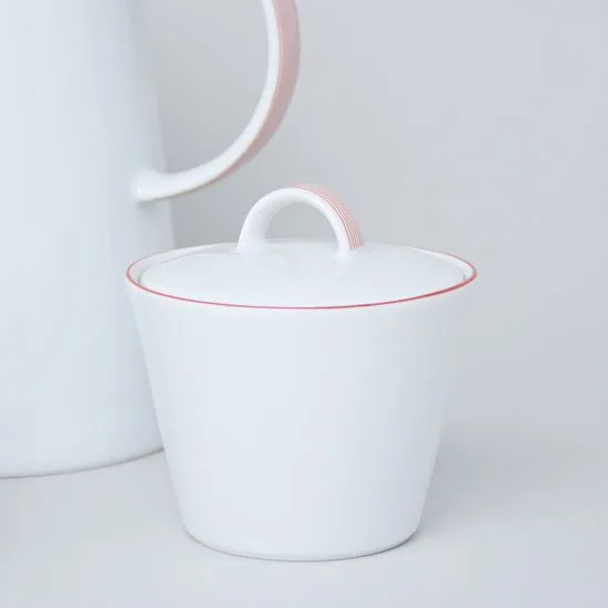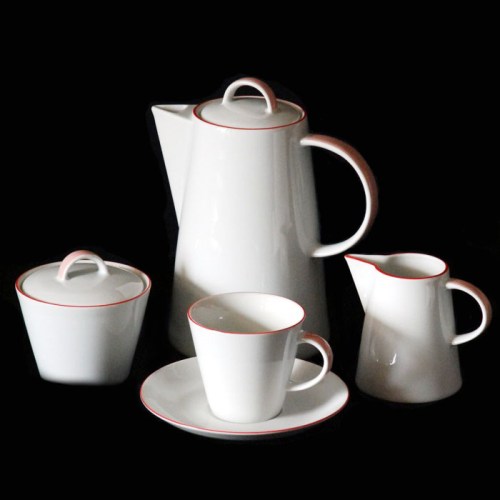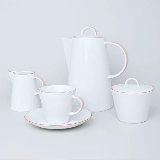 Порцеляновий кавовий сервіз білий з червоним кантом Thun Tom 17 пр/6 п