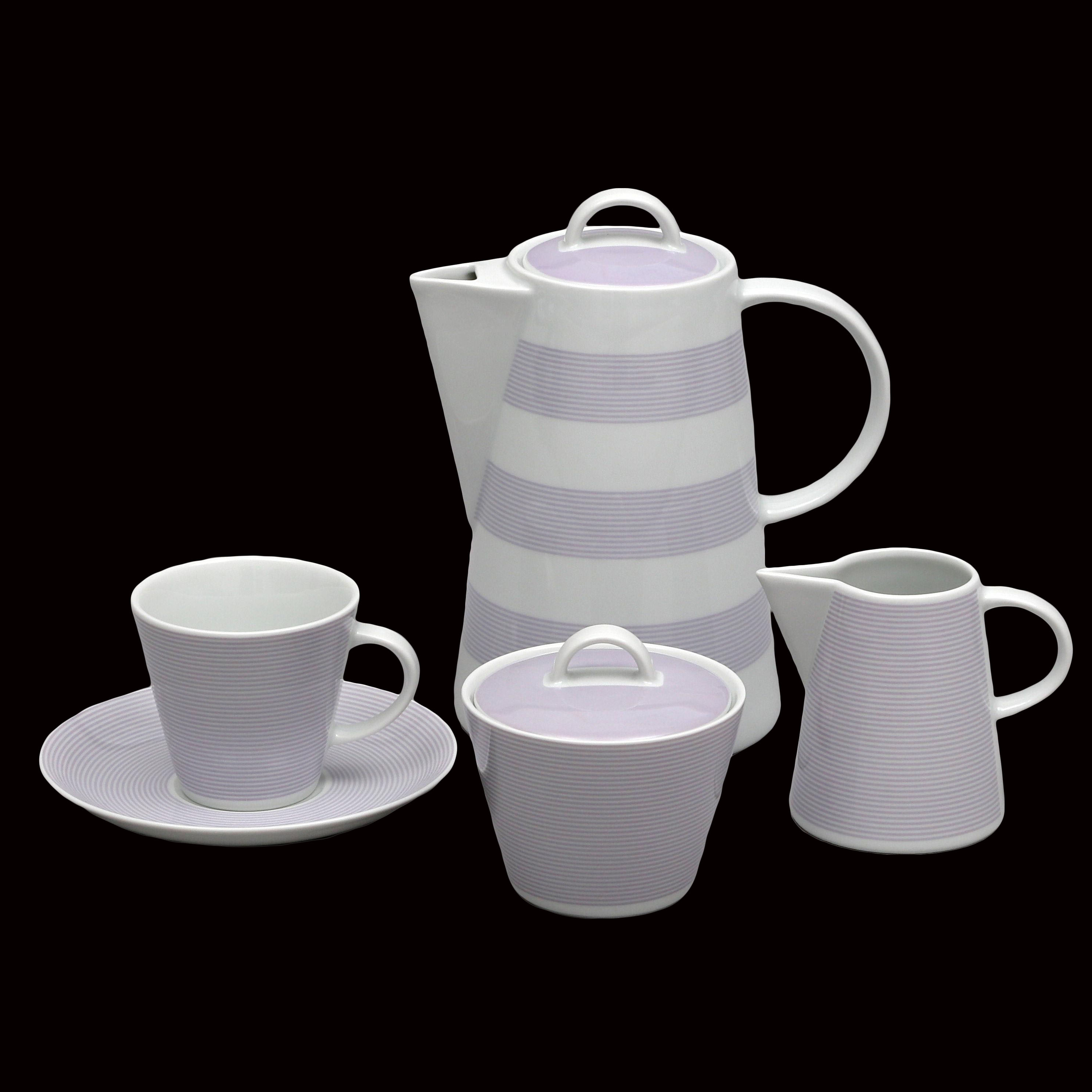 Пориньте в атмосферу легкості та затишку з кавовим сервізом Thun Tom. Білосніжна порцеляна у поєднанні з життєрадісними бузковими смугами надає кожній чашці та блюдцю особливої теплоти. Цей сервіз створено для того, щоб кожна кавова пауза була приємною та незабутньою.