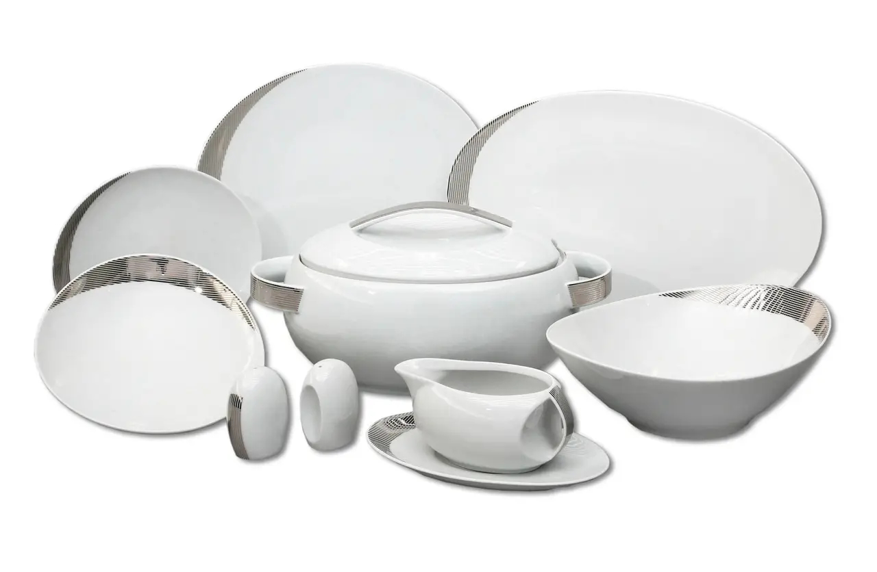 Перетворіть кожну трапезу на справжнє свято! Цей елегантний сервіз на 6 осіб — вибір тих, хто цінує стиль та витонченість. Білосніжна порцеляна з платиновою облямівкою підкреслить важливість кожного моменту — від сімейного обіду до урочистого заходу.