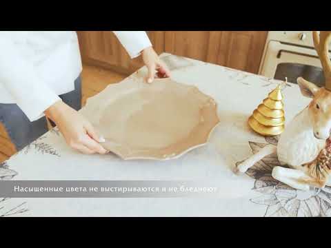 Красиве свято без зайвого клопоту – для цього пропонуємо практичну світлу скатертину, що мерехтить яскравими зірочками люрексу. Ніжне забарвлення та пишні суцвіття пуансеттії створюють ідеальну гармонію, яка може бути і тлом для сервірування, і декором інтер'єру. Непомітне тефлонова просочення не дає рідинам і плямам вбиратися в тканину, при цьому скатертина зберігає фактуру звичайного гобелену. Про водовідштовхувальні властивості полотна можна здогадатися тільки в процесі тривалого та приємного використання.