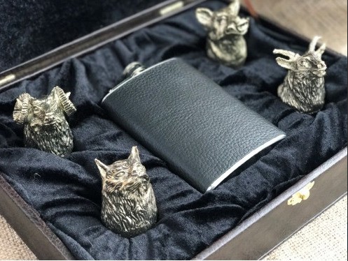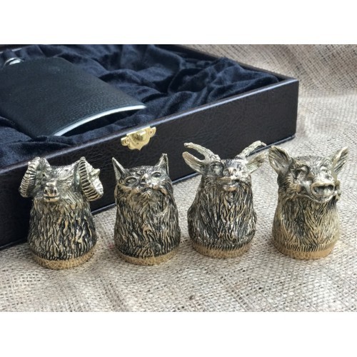 Набор 4 чарки "Охотничьи" с флягой
